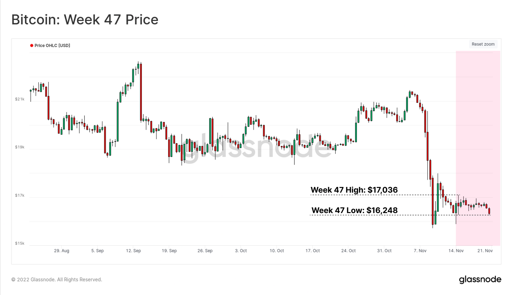 As the dust settles following the FTX fallout, and with a few more weeks of data available, we are able to assess whether recent market weakness has shaken the confidence of Bitcoin holders. The market continues to consolidate this week, however did trade down from the early-week high of $17,036, to close at $16,248, one of the lowest closing prices of the cycle.