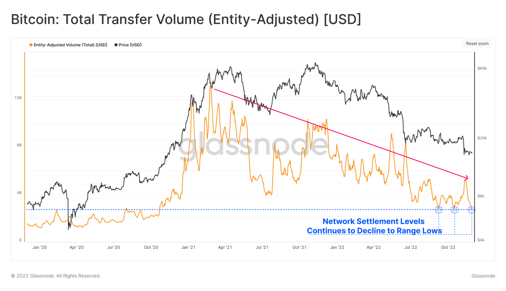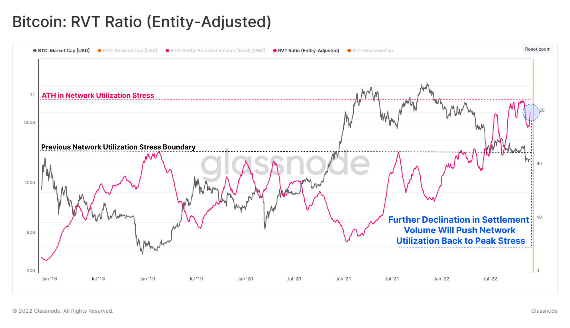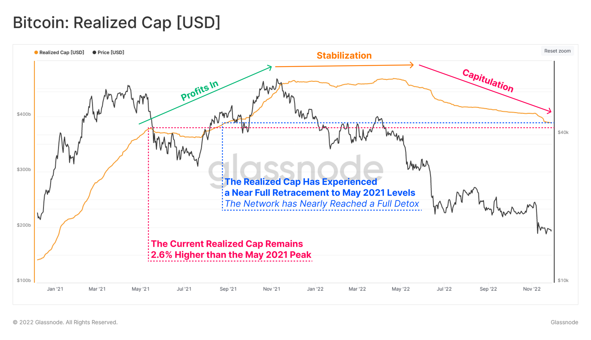 In the wake of one of the largest deleveraging events in digital asset history, the Bitcoin Realized Cap has declined such that all capital inflows since May 2021, have now been flushed out. There is an associated uptick in on-chain activity, however it lacks substantial volume follow through.