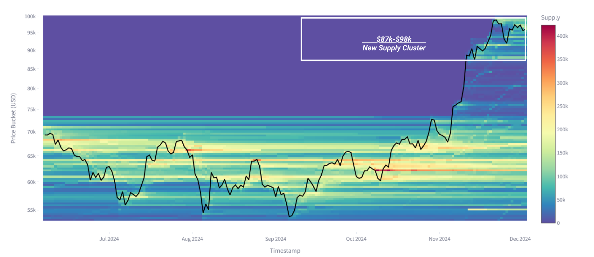 - Early supply redistribution patterns suggest key demand clusters are between $87k and $98k, with very little supply having changed hands during the rally from $74k to $87k.