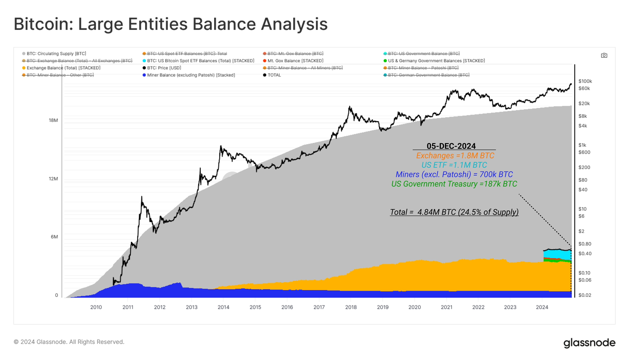 These balances also underscore the increasing institutionalization and centralization of Bitcoin custody, balancing individual ownership with larger aggregated holdings that drive liquidity and market stability.