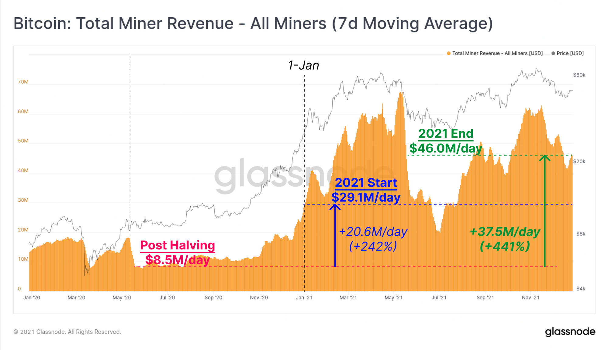 - Meanwhile, aggregate miner revenue is up 58% YTD, and up over 440% since in the halving event in May 2020.