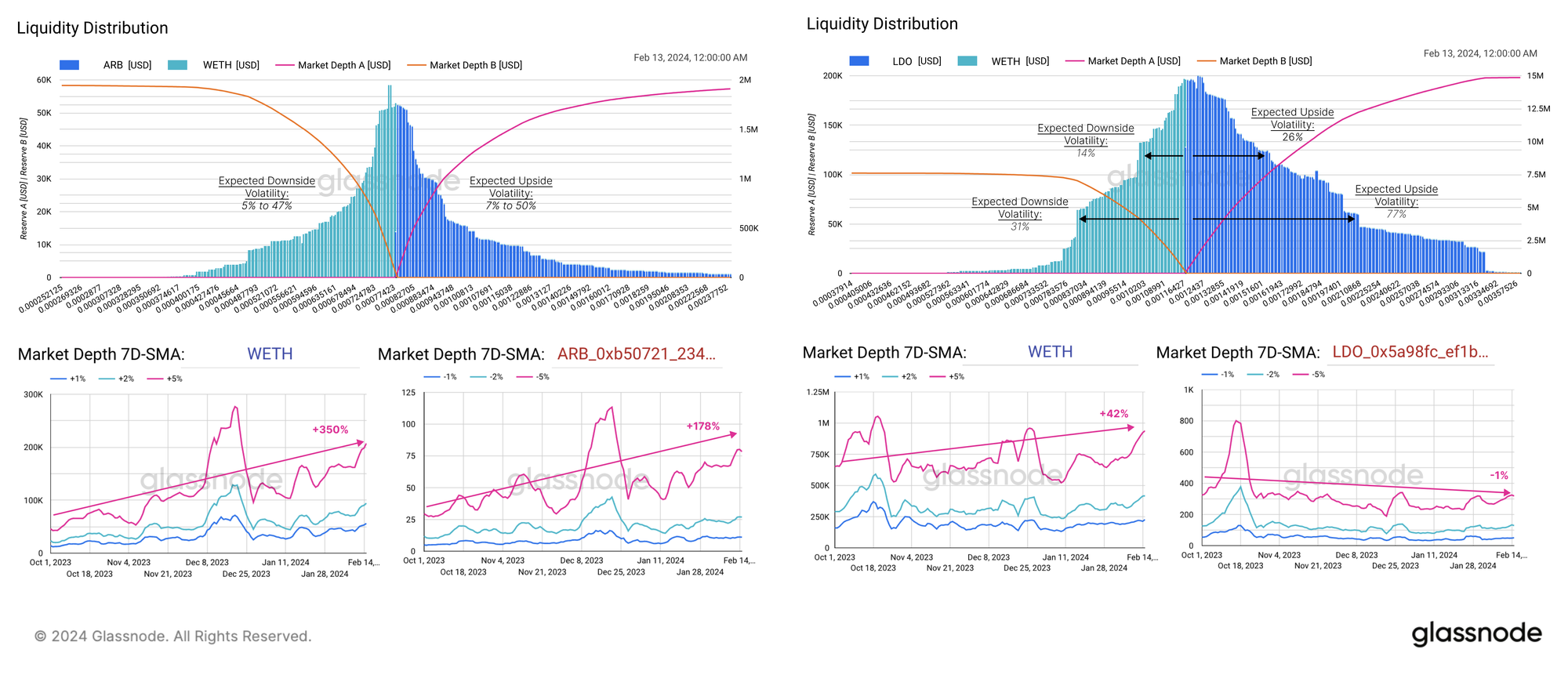 Şimdi her bir Ethereum sektöründeki en iyi token havuzlarını inceleyeceğiz. Bu, likiditenin çeşitli fiyat aralıklarındaki dağılımını değerlendirmeyi ve piyasa derinliğinin gelişimini gözlemlemeyi içerir (WoC 36'da ortaya koyduğumuz hipotezimize benzer şekilde).