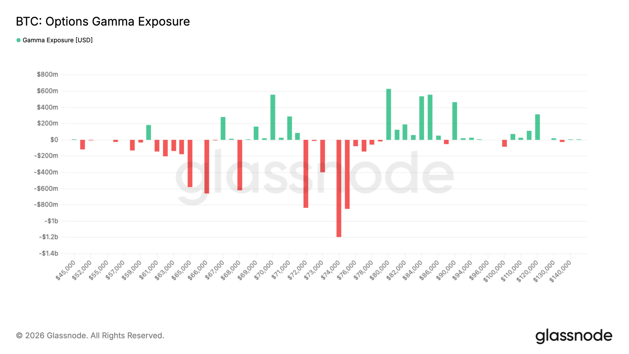 Piyasa yapıcı pozisyonlanmasına dönecek olursak, gamma profili geçen haftaya kıyasla anlamlı bir şekilde değişti. Daha önce piyasa, 40 binlerin altından 80 bin dolara kadar uzanan geniş bir kısa gamma aralığının içinde bulunuyordu. Bu durum, piyasa yapıcı hedge'lerinin fiyat hareketlerini her iki yönde de amplifiye edebileceği koşullar yaratıyordu.