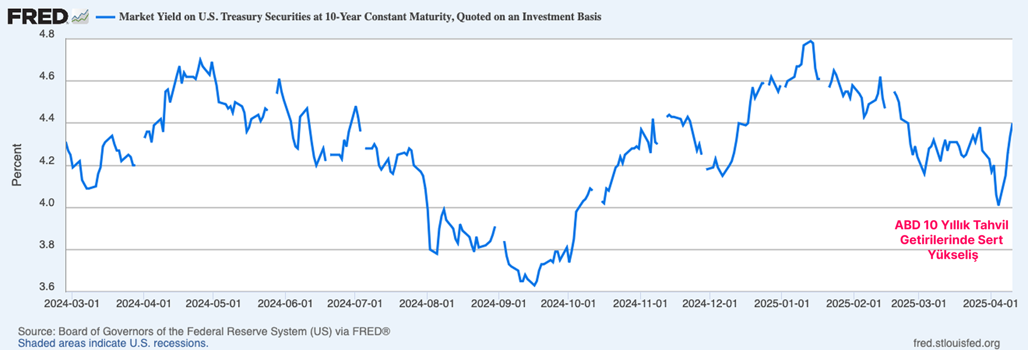 - Küresel ticaret ilişkilerinin yeniden yapılandırılması devam ederken, makroekonomik ortam belirsizliğini korumaktadır. Bu belirsizlik, hem ABD Hazinesi hem de hisse senedi piyasalarında artan oynaklığa katkıda bulunmuştur.