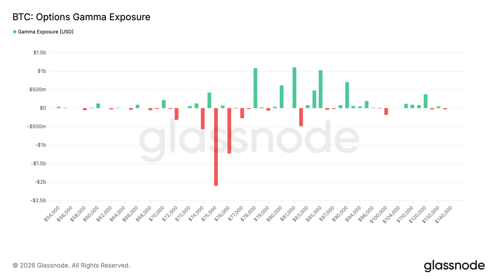 Piyasa yapıcı gamma'sına bakıldığında pozisyonlanma tablosu daha net hale geliyor. Mevcut fiyatın altında, özellikle 75 bin dolar bölgesinde büyük bir negatif gamma yoğunlaşması bulunuyor ve burada maruziyet en uç seviyelerine ulaşıyor.