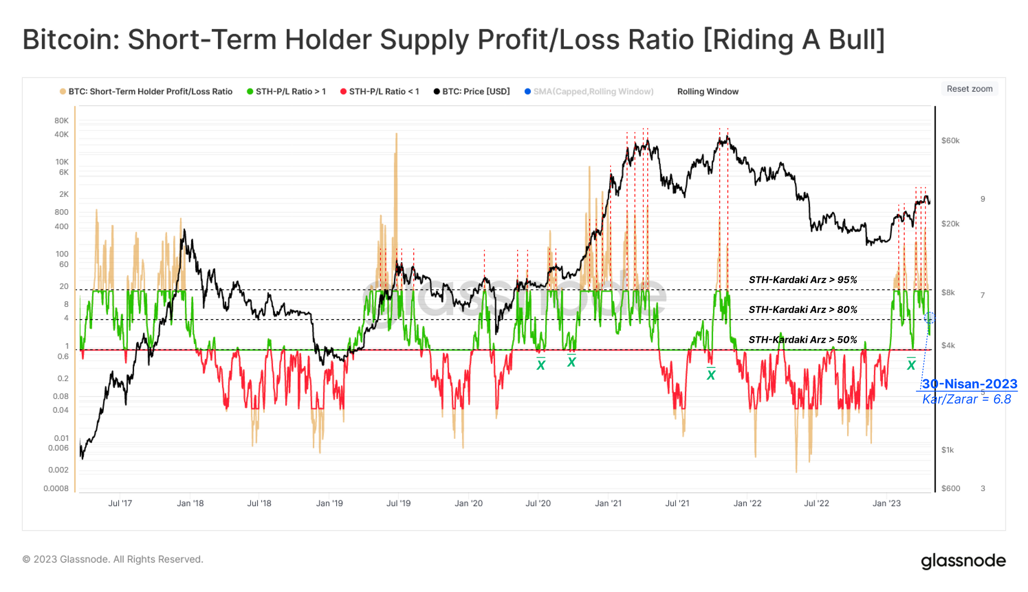 - STH-Arz Karı > %80 ( K/Z Oranı > 4): Makro yükseliş trendlerindeki düzeltmeler sırasında sıklıkla tekrar ziyaret edilir ve kısa vadeli satıcı tükenme noktasını işaret edebilir.