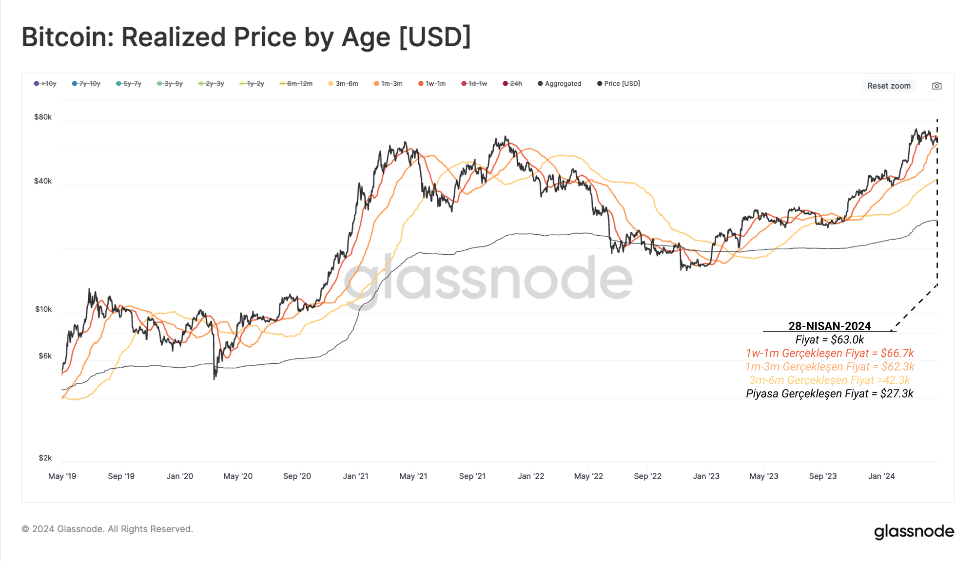 Bu genç yaş grupları arasında, 1m-3m 🟠 ve 3m-6m 🟡 gruplarının maliyet tabanı, boğa ve ayı piyasası yapılarını ayırt etmek için değerli araçlar olarak ortaya çıkmaktadır. Bununla birlikte, 1w-1m 🔴 maliyet temelinin, potansiyel yerel dipleri (boğa piyasalarında) ve yerel tepeleri (ayı piyasalarında) tespit etmemize yardımcı olarak piyasa bükülme noktalarına karşılık geldiği görülmüştür.