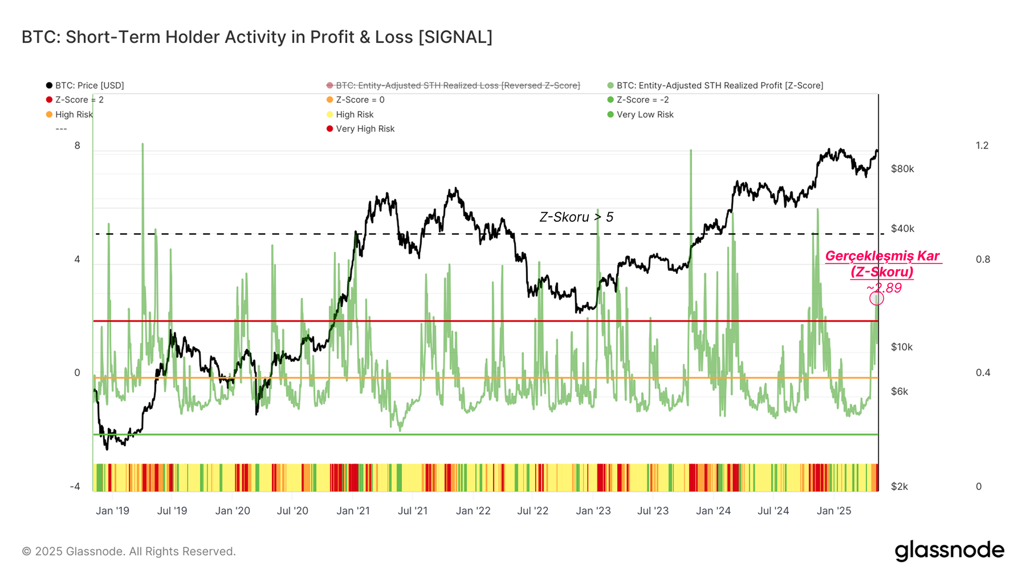 Kısa vadeli yatırımcılar (STH'ler) şimdi gerçekleşmemiş karlarla otururken, kar realizasyon aktivitesinde bir artış beklemek doğaldır. Bu grubun davranışını izlemek, yerel bir zirve civarında talep tükenmesinin yaklaşıp yaklaşmadığını tespit etmek için kritik öneme sahiptir.