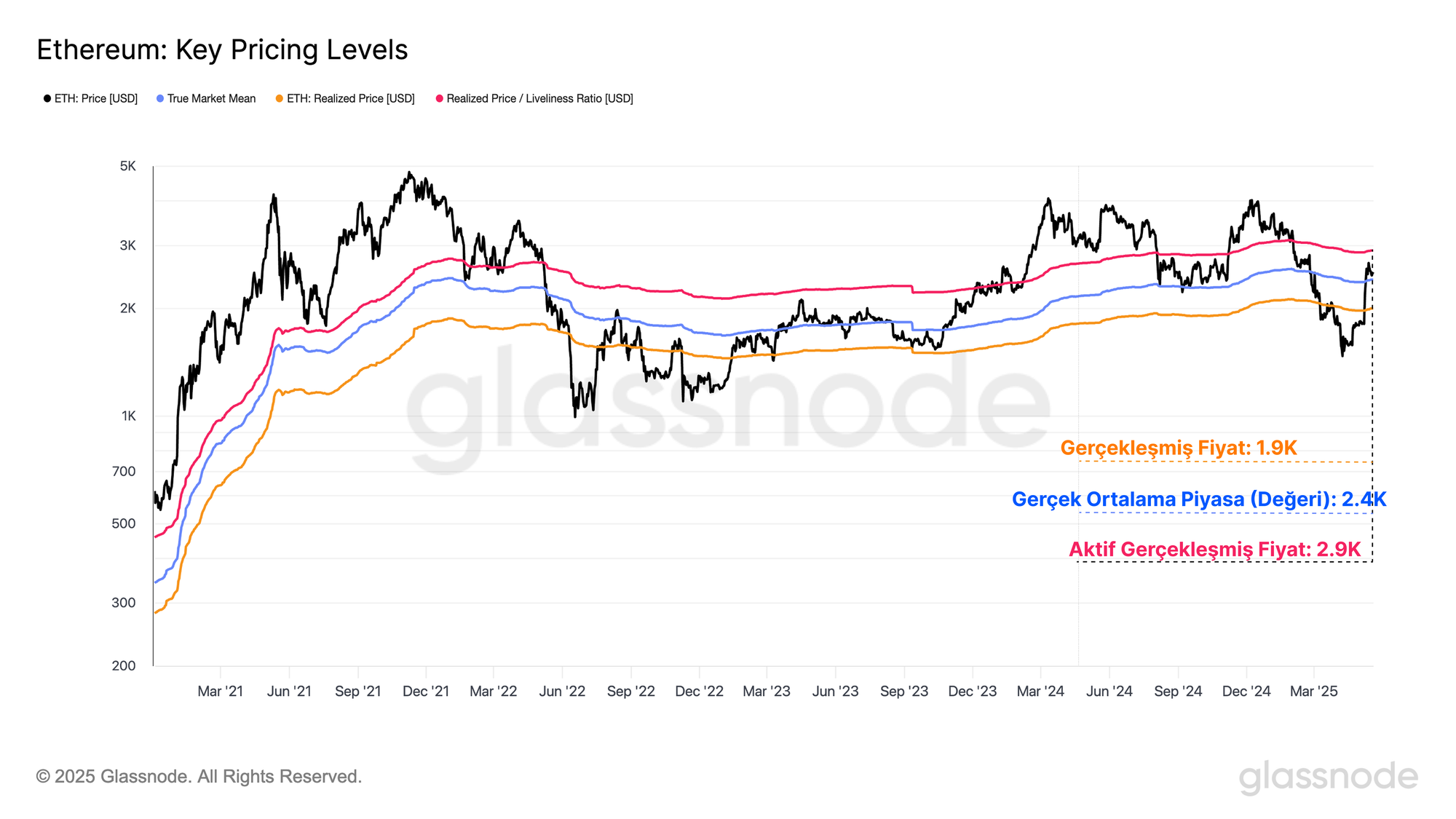 Olumlu bir gelişme olarak, fiyat Gerçek Piyasa Ortalaması'nın da üzerine çıkarak bu yukarı yönlü hareketin gücünü teyit etti. Ancak, Aktif Gerçekleşmiş Fiyat hala üst seviyelerde bulunuyor ve Ethereum yatırımcı güvenindeki sürekli iyileşmeyi desteklemek için kesin olarak aşılması gereken kritik bir seviye olmayı sürdürüyor.