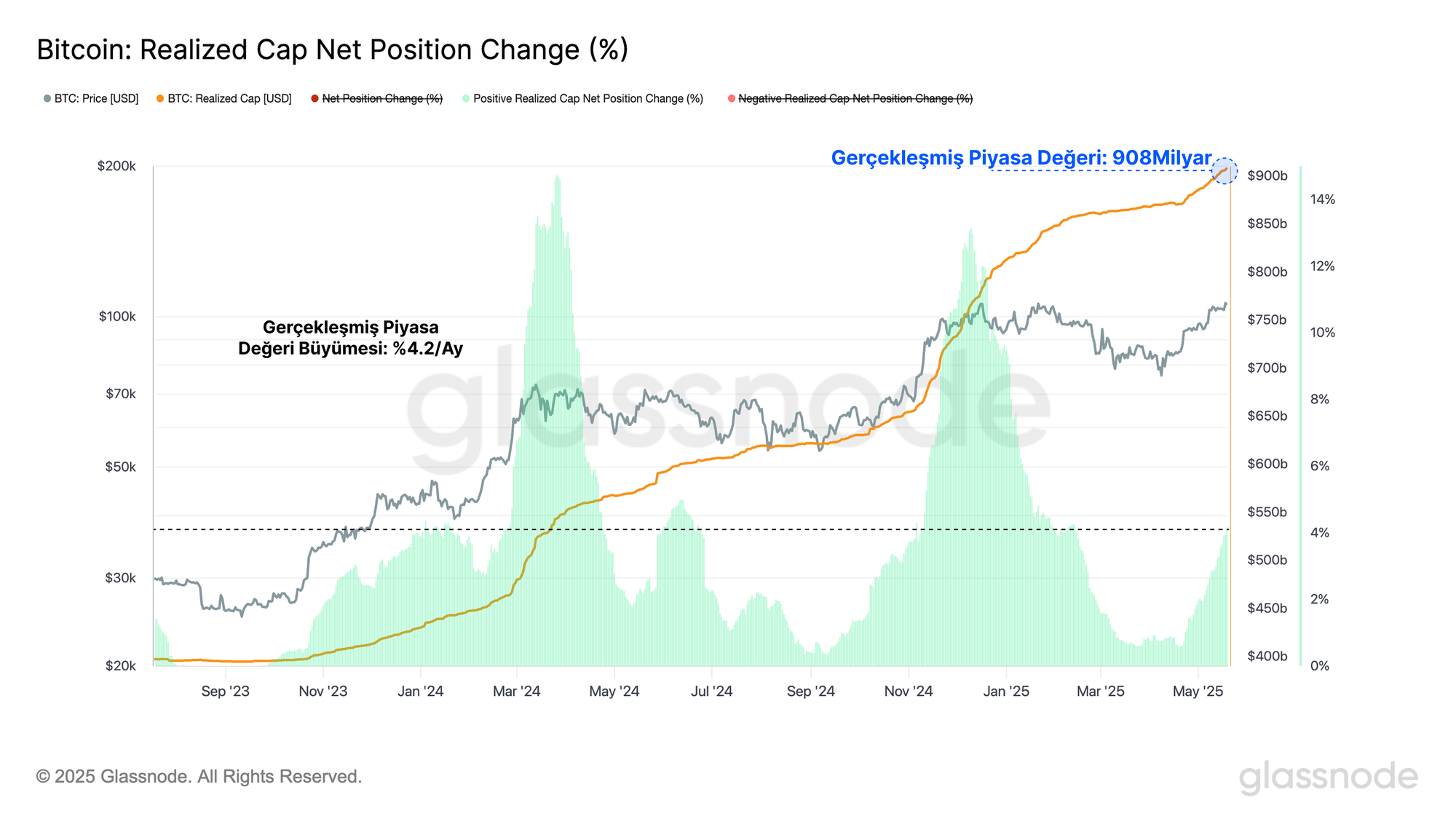Bu durum, Gerçekleşmiş Piyasa Değerini yeni bir tüm zamanların zirvesine (ATH) taşıdı ve ilk kez 900 milyar doların üzerine çıkarak, yatırımcıların önde gelen dijital varlıkta depoladığı muazzam değeri vurgulayan önemli bir kilometre taşına ulaştı.