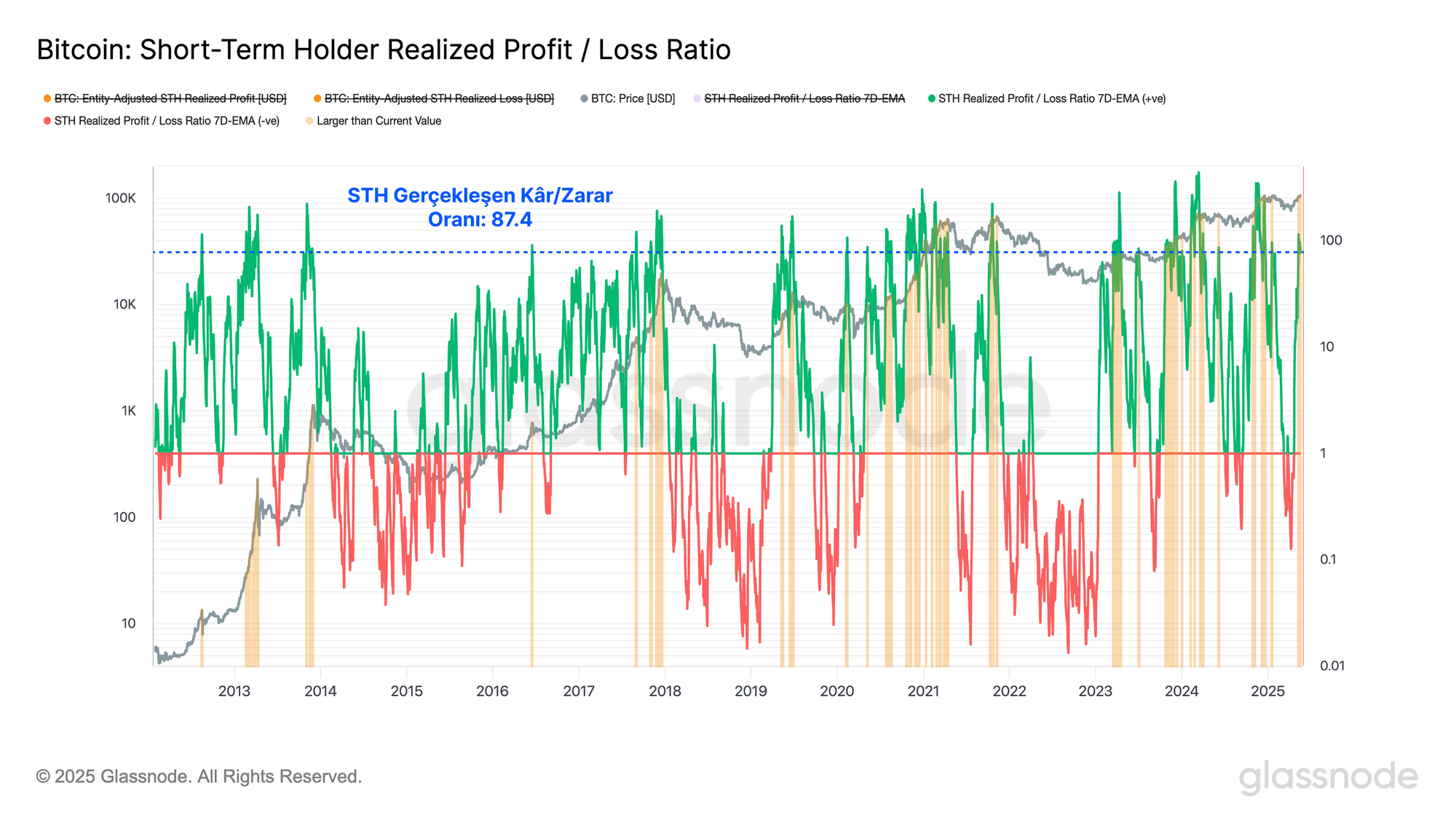Bu analizi, mevcut yatırımcılar perspektifinden piyasanın ne kadar "dengede" olduğunu değerlendiren güçlü bir araç olan Satış Tarafı Risk Oranı'nı kullanarak tamamlayabiliriz. Bu metriği şu çerçevede ele alabiliriz: