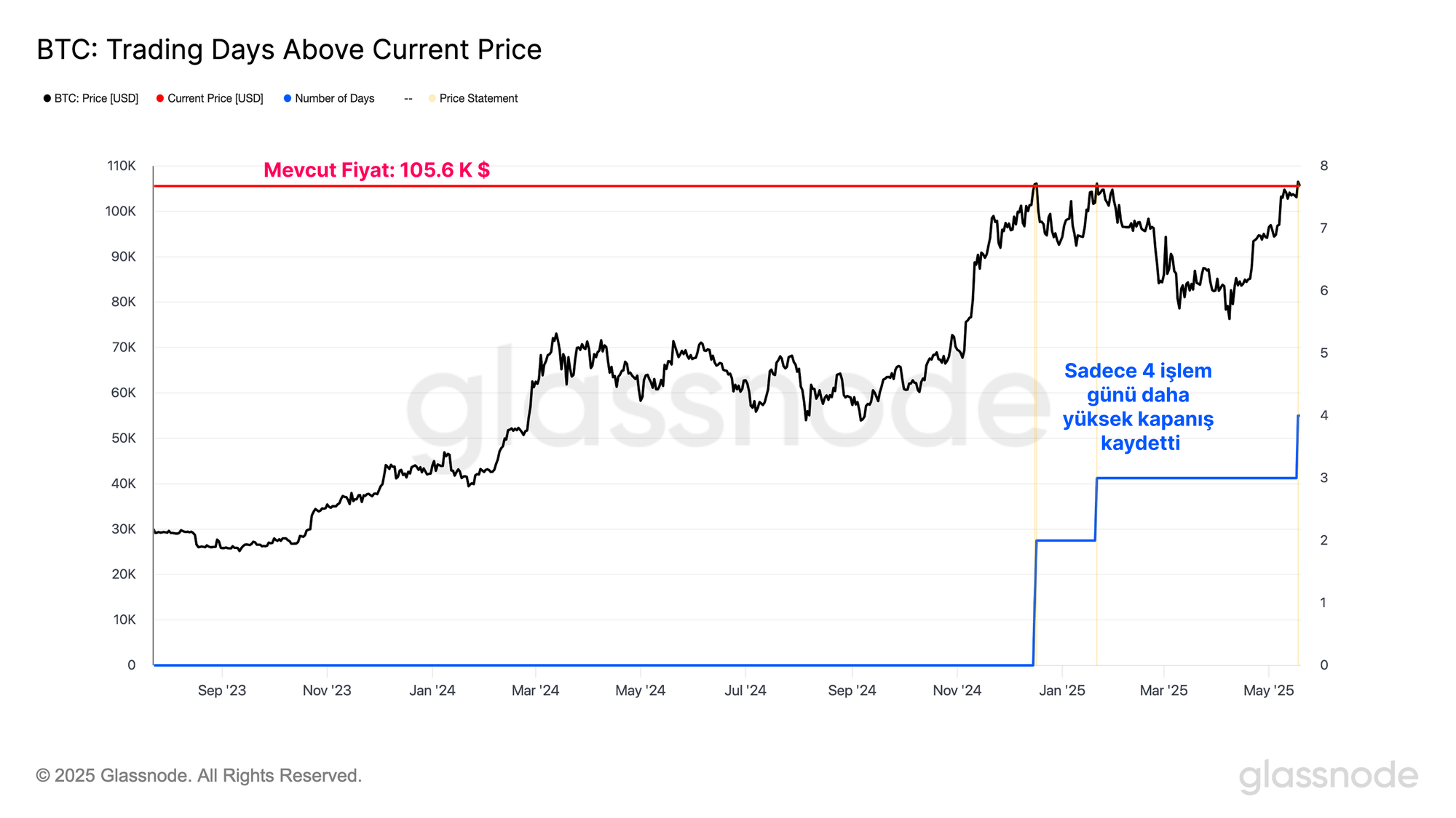 Bugüne kadar sadece 4 işlem günü daha yüksek günlük kapanış fiyatı kaydetti ve son haftalık kapanış 106,5 bin dolar ile tarihin en yüksek seviyesi oldu. Bitcoin son altı haftada yaklaşık %40 daha yüksek işlem görerek piyasa toparlanmasının ne kadar güçlü olduğunu gözler önüne serdi.