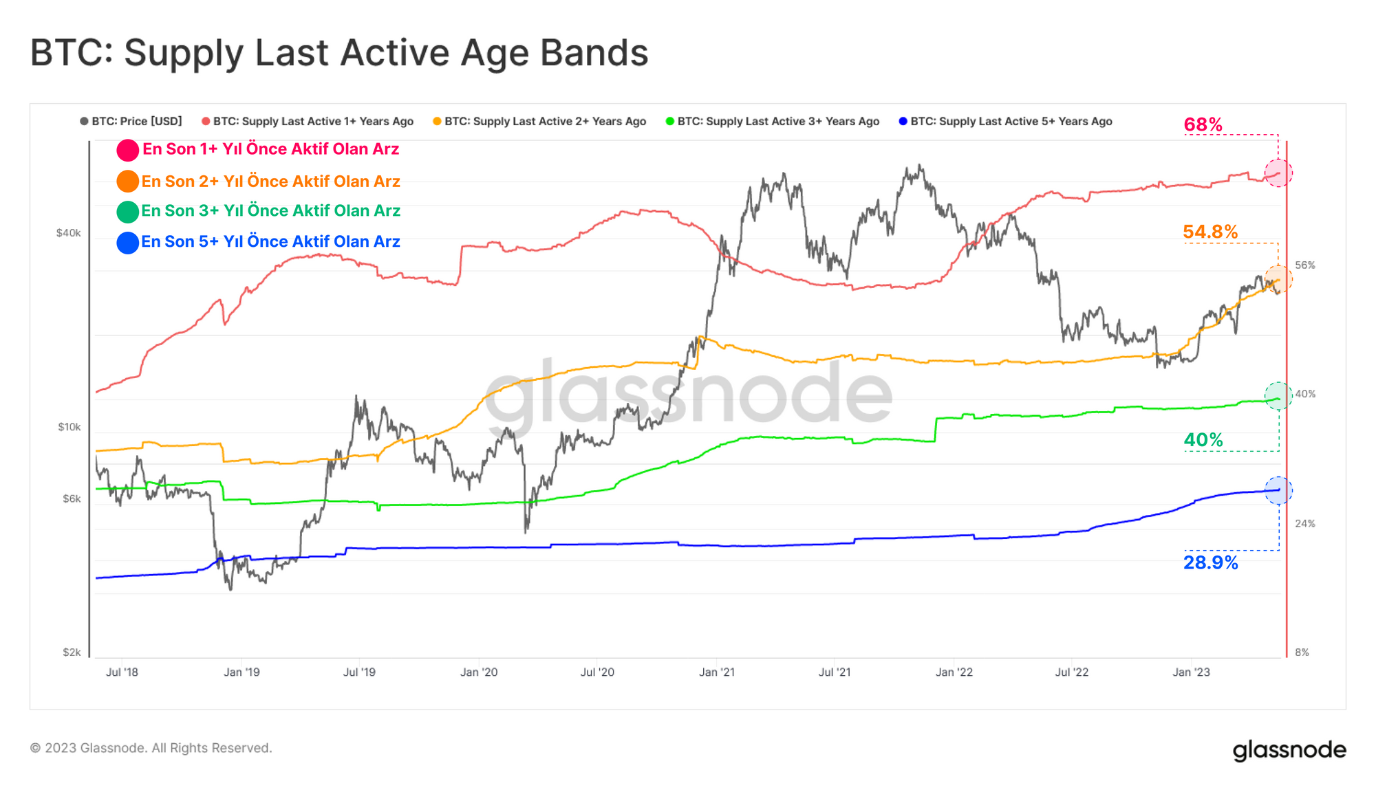 Bu olgu, 14,46 milyon BTC'lik yeni bir ATH seviyesinde olan Uzun Vadeli Sahip Arzına da (155 günden fazla elde tutulan coinler) yansımıştır. Bu, FTX çöküşünden hemen sonra elde edilen coinlerin LTH statüsüne olgunlaşmasını yansıtmaktadır.