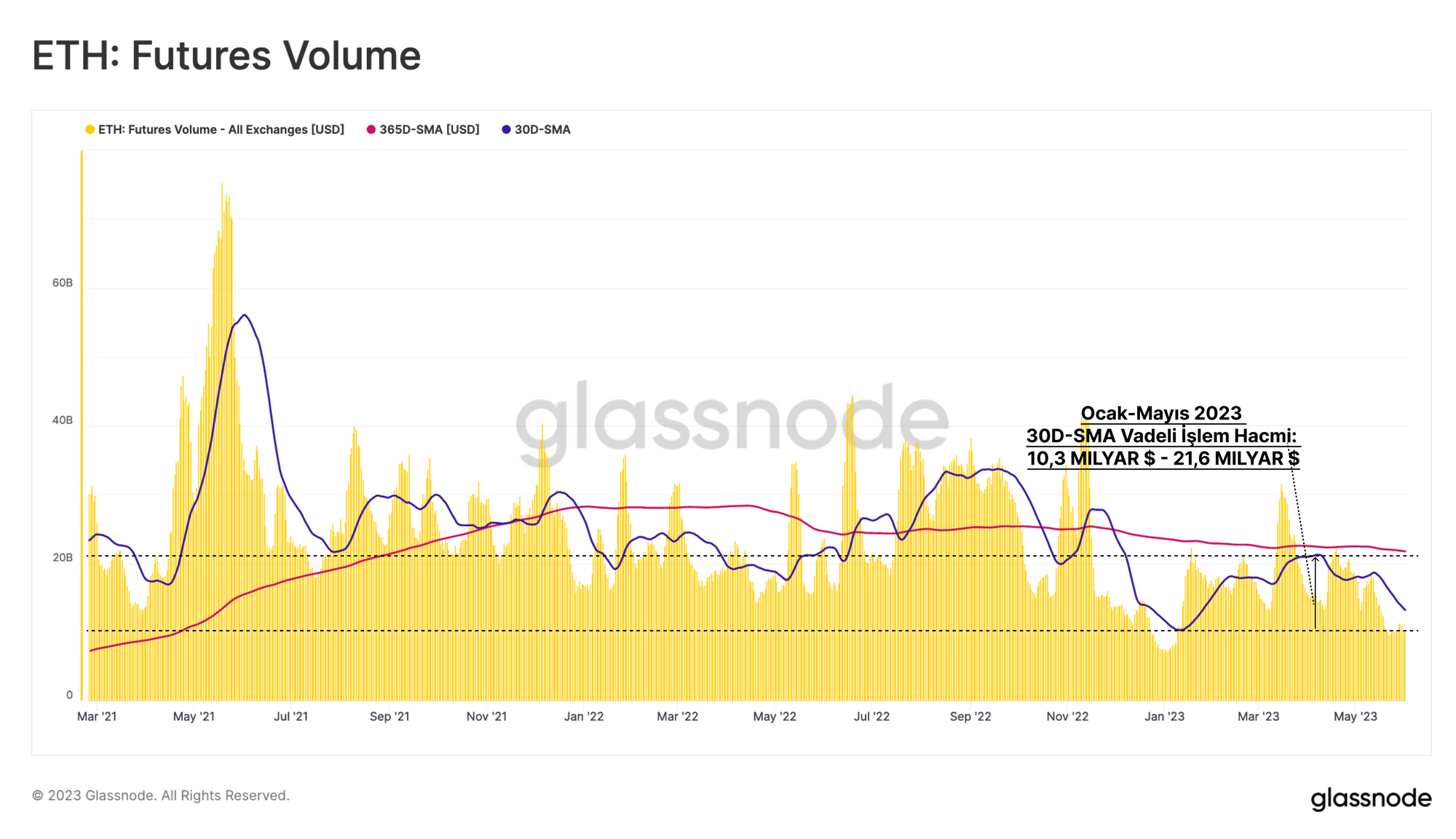 Uniswap alım satım faaliyetlerindeki artışın aksine, vadeli alım satım işlemleri Mayıs ayı boyunca daralmaya devam etti ve bu da kurumsal alım satım ilgisinin ve likiditenin oldukça zayıf kaldığını gösteriyor.