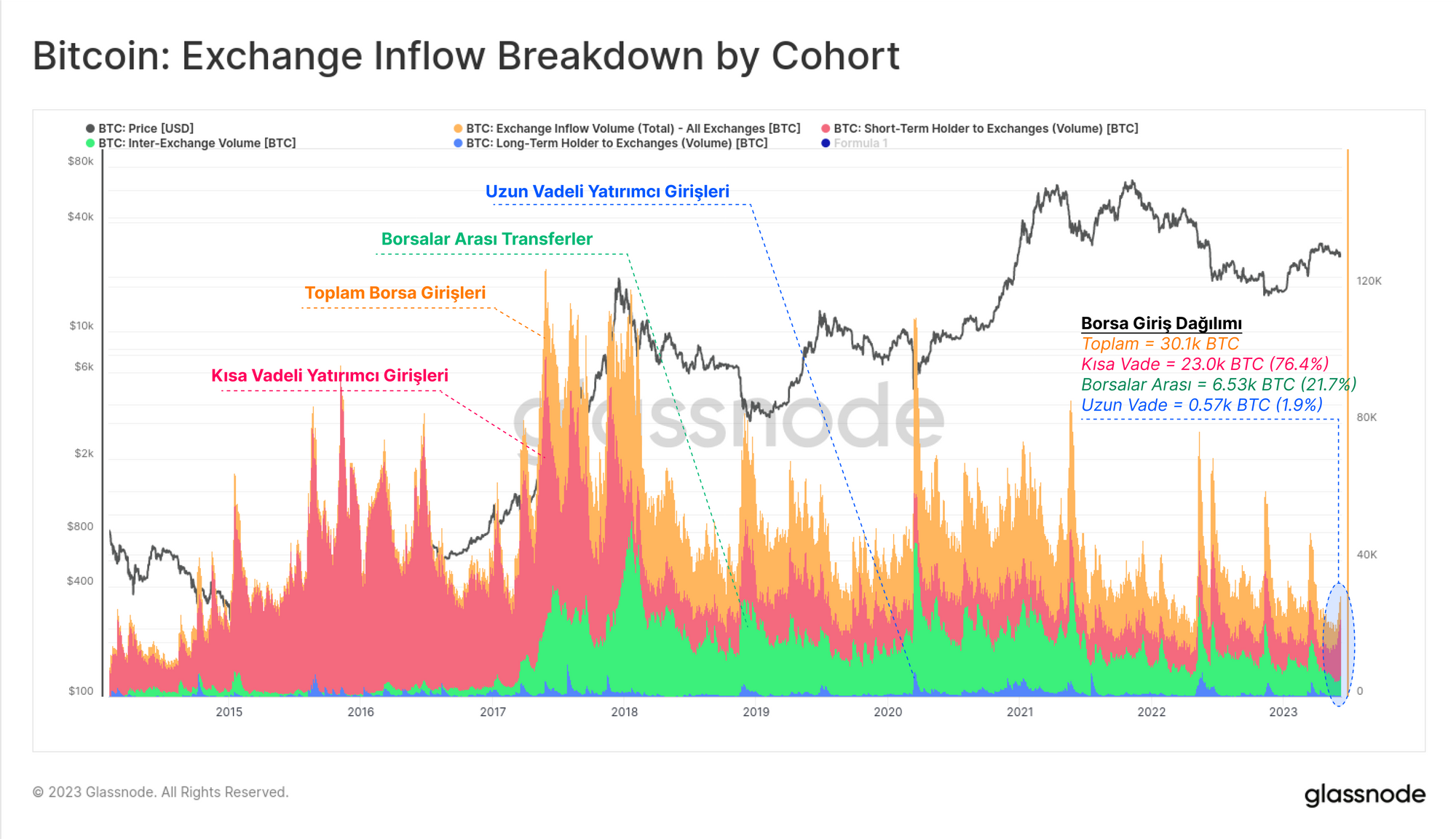 - 🟢 Borsalar Arası Transferler giriş hacminin %21,7'sini oluşturuyor (6,53 bin BTC)