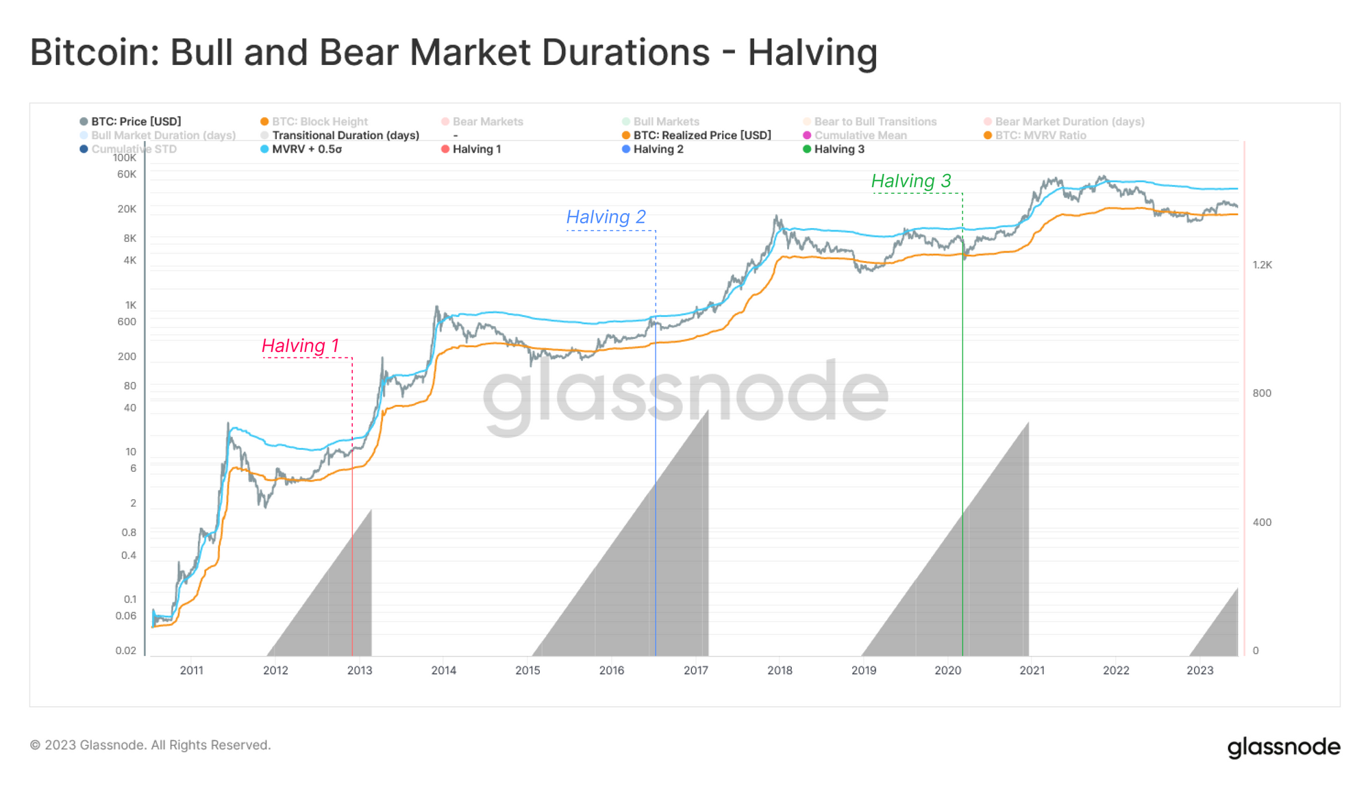 Bitcoin'in yarılanmasına sadece 305 gün kala, bu geçiş dönemleri ile yarılanma olayları arasındaki ilişkiyi de görebiliriz; bu olaylar yolculuğun yaklaşık üçte ikisinde gerçekleşme eğilimindedir.