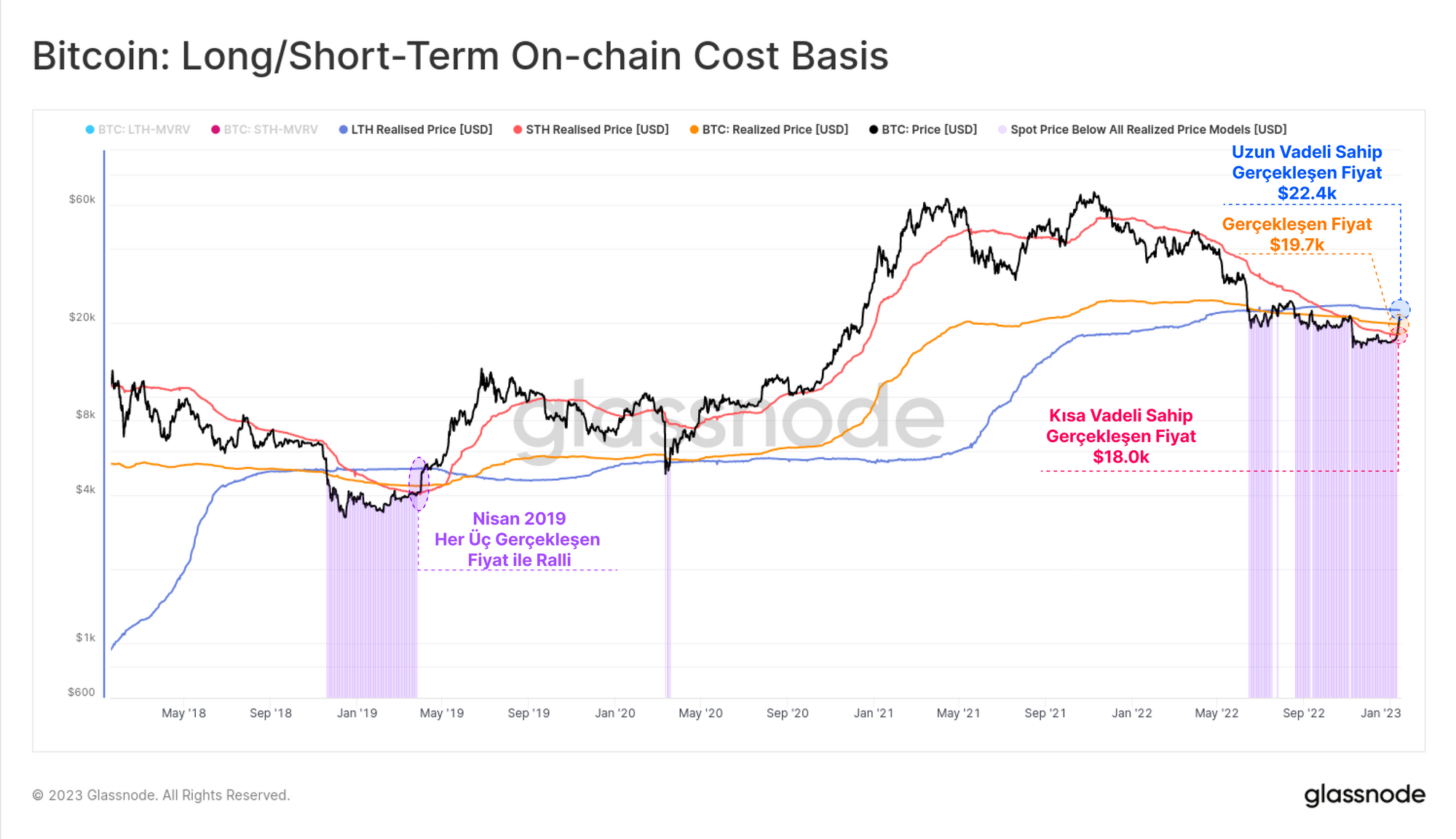 - Çeşitli yatırımcı grupları için 200D-SMA ve Gerçekleşen Fiyat gibi temel teknik ve zincir üstü seviyeler.