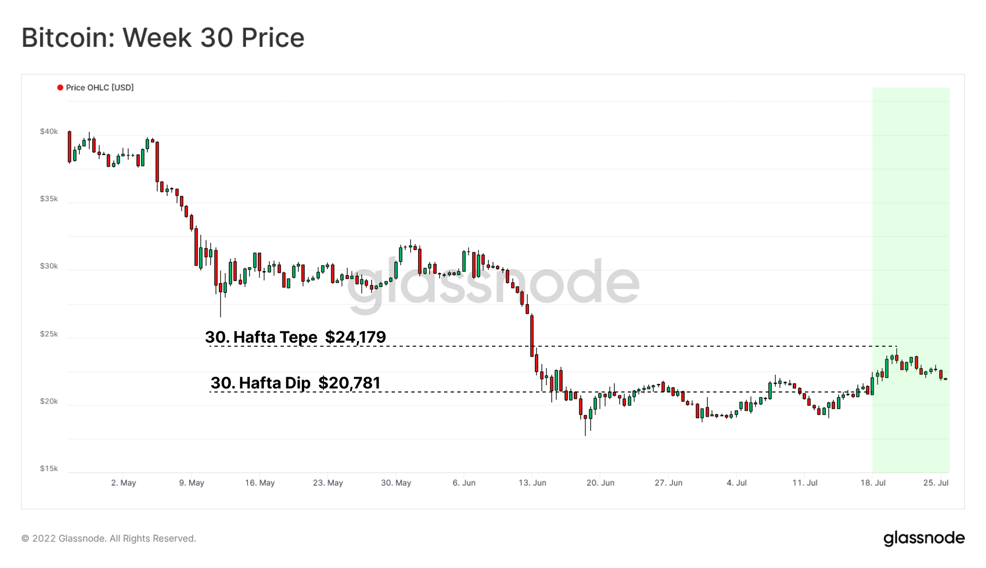 Bir aylık konsolidasyondan sonra, Bitcoin fiyatlarında uzun zamandır beklenen rahatlama rallisi sonunda yaşadı ve haftalık açılışın %9 üzerinde kapandı. 20.781 dolardan başlayan fiyat hareketi, hafta sonu konsolidasyon aralığının en yüksek seviyelerine geri çekilmeden önce 24.179 dolarla zirve yaptı.
