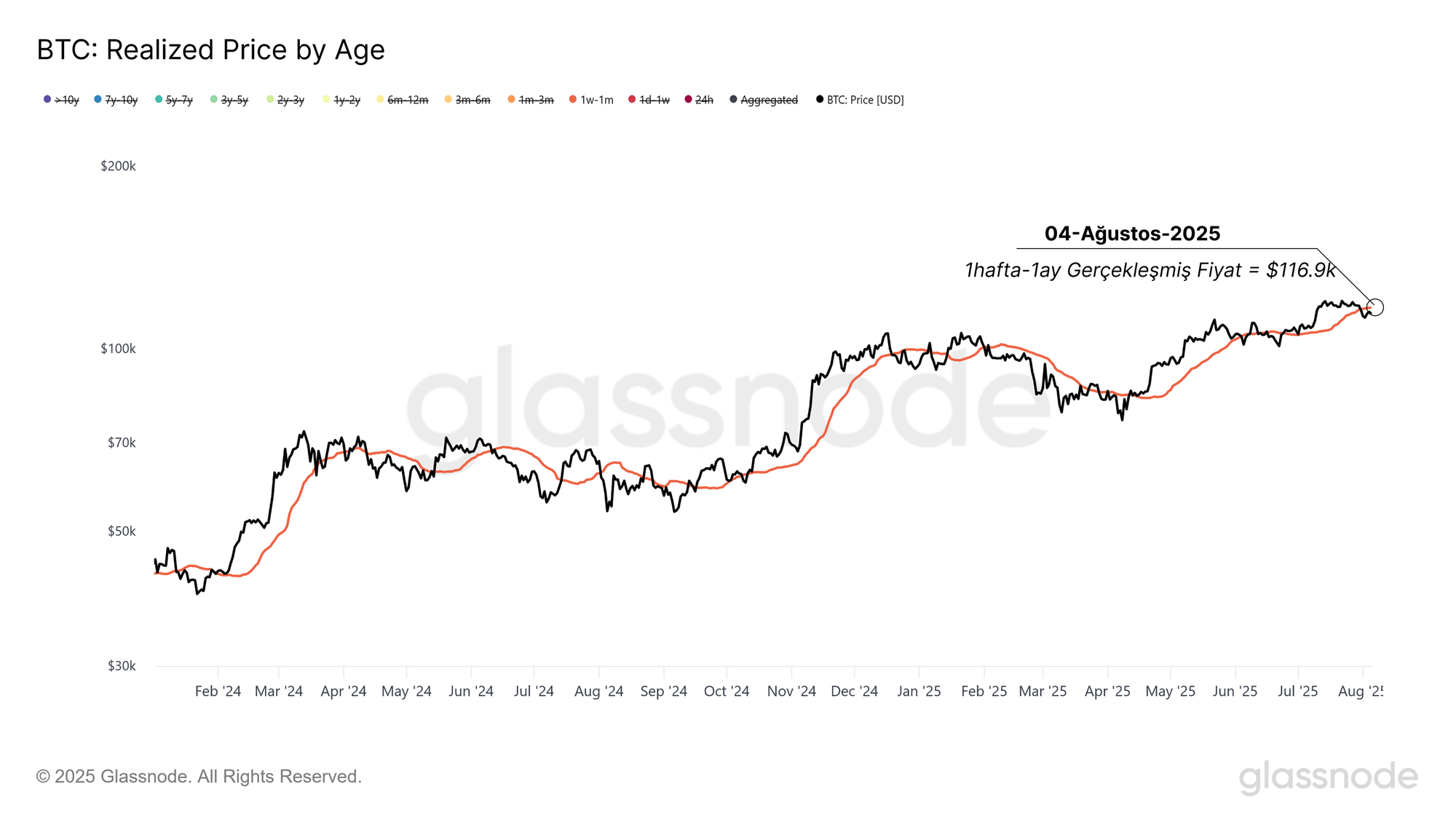 Son bir haftadaki birikime rağmen, piyasa henüz son bir ayda işlem yapan yeni alıcıların maliyet tabanını (116,9 bin dolar) aşacak güçte bir toparlanma gösteremedi.