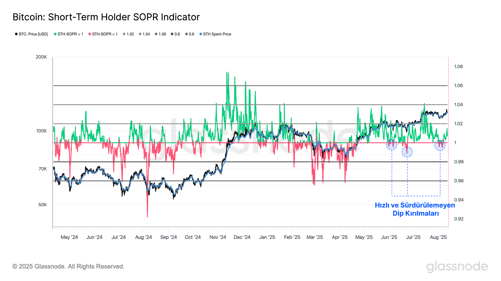 - Bitcoin momentumu, önemli on-chain göstergelerde güçlü kalmaya devam ediyor. Kısa Vadeli Yatırımcıların (STH) son 112 bin dolarlık geri çekilme sırasında gerçekleşen kayıpları belirgin şekilde sınırlı kaldı, yatırımcıların büyük çoğunluğu hâlâ kârlı konumda.