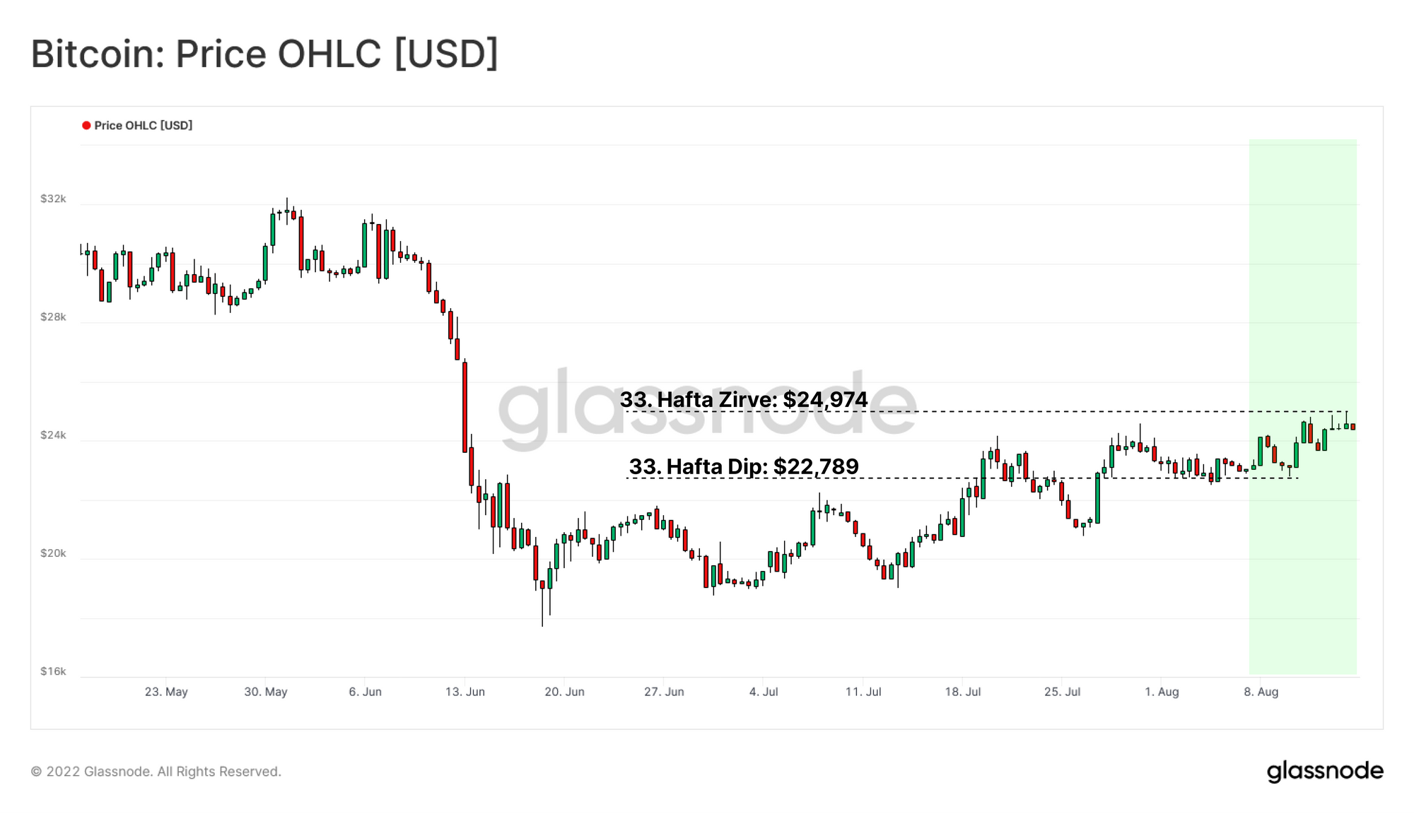Bitcoin Piyasası, enflasyon baskılarının yavaşlaması ile birlikte diğer risk varlıklarıyla beraber son yükseliş hareketine devam ediyor. Bitcoin fiyatları bir aralıkta konsolide olmaya devam ediyor, haftalık en düşük seviye olan 22.789 dolardan, 24,974 dolara kadar yükseldi.
