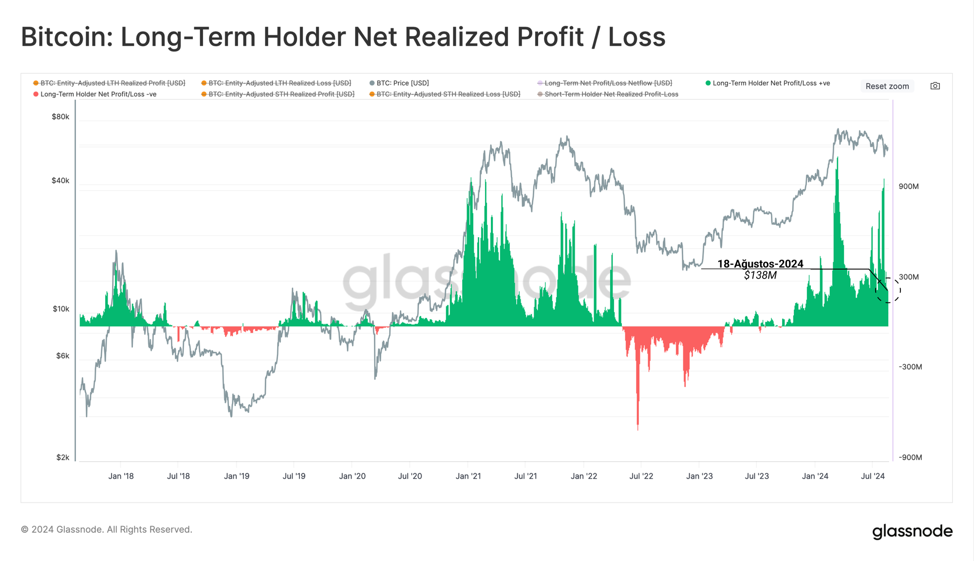 Bu nedenle, Uzun Vadeli Yatırımcıların günlük yaklaşık 138 milyon $ satış baskısının, arzı emmek ve fiyatları sabit tutmak için gereken günlük sermaye girişlerini temsil ettiğini çıkarabiliriz. Piyasa koşulları dalgalı olmasına rağmen, son birkaç ayda fiyatlar genel olarak yatay seyretmektedir, bu da bir tür dengenin sağlandığını göstermektedir.