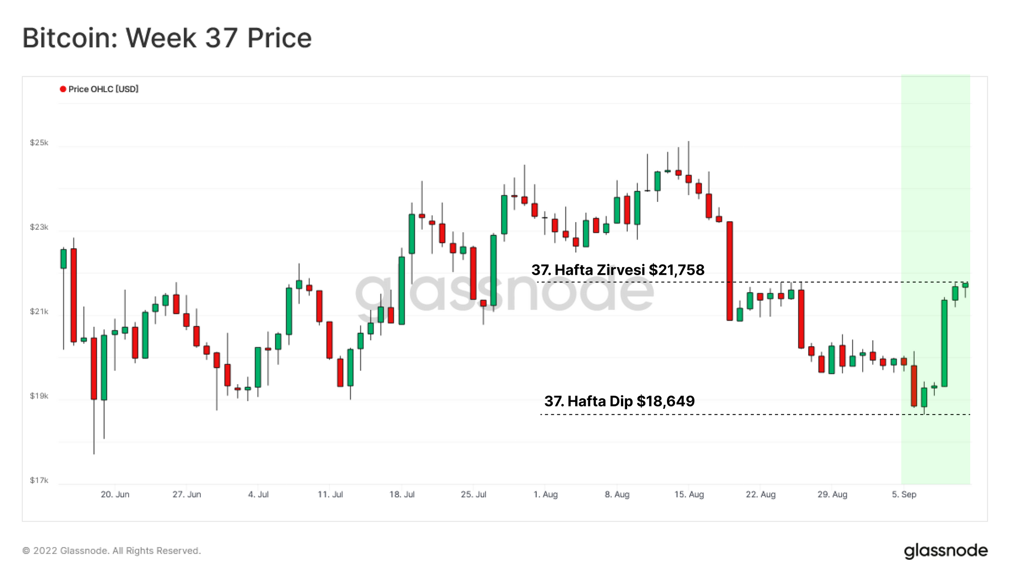 Bitcoin piyasası, hakim ayı piyasasının ikinci en düşük seviyesinden (18.649 $) sıçrayan güçlü bir ralli yaşadı. Fiyatlar 21.758 dolara yükseldi, ancak üç aydan fazla bir süredir kurulmuş olan konsolidasyon aralığında sağlam bir şekilde kaldı.