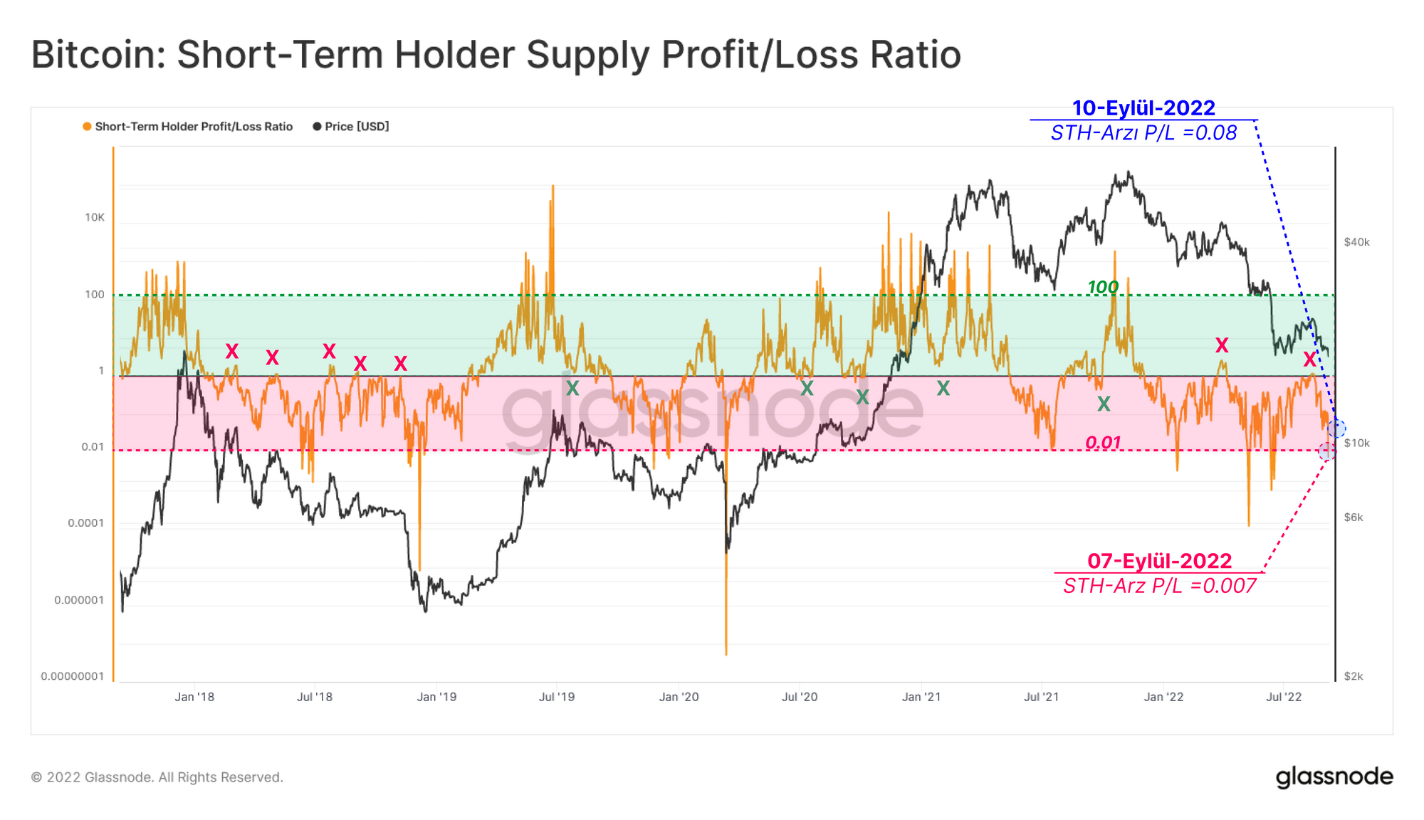 Piyasanın 24,5 bin dolarlık bir rallide red yemesinden sonra, Bitcoin fiyatları ayı döngüsünün ikinci en düşük seviyesi olan 18,5 bin dolara düştü. Bu seviye, arzın %11,8'inden fazlasını gerçekleşmemiş bir kayba tekrar sokarak aşağı yönlü risk ve dip oluşumu olasılığını incelememize olanak tanıdı.