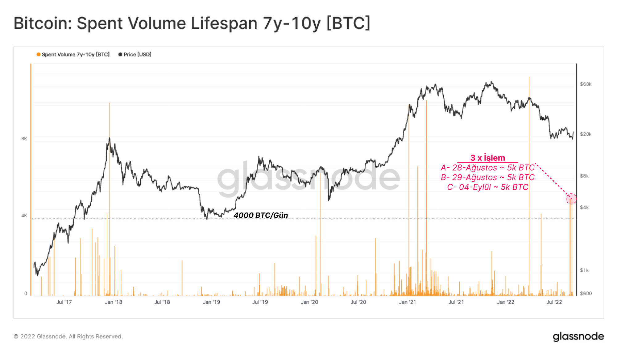 Bu bültende, onchain maliyet bazında bu kavrama ve değişen kripto para karlılığına odaklanacağız. Ayrıca, son haftalarda 7y-10y yaşlarındaki üç ~ 5k BTC balina büyüklüğünde işlemin yapıldığı çok nadir bir olayı da analiz edeceğiz. Bu kripto paralar Aralık 2013'te biriktirildi ve 163 milyon doların üzerinde kar elde etti.