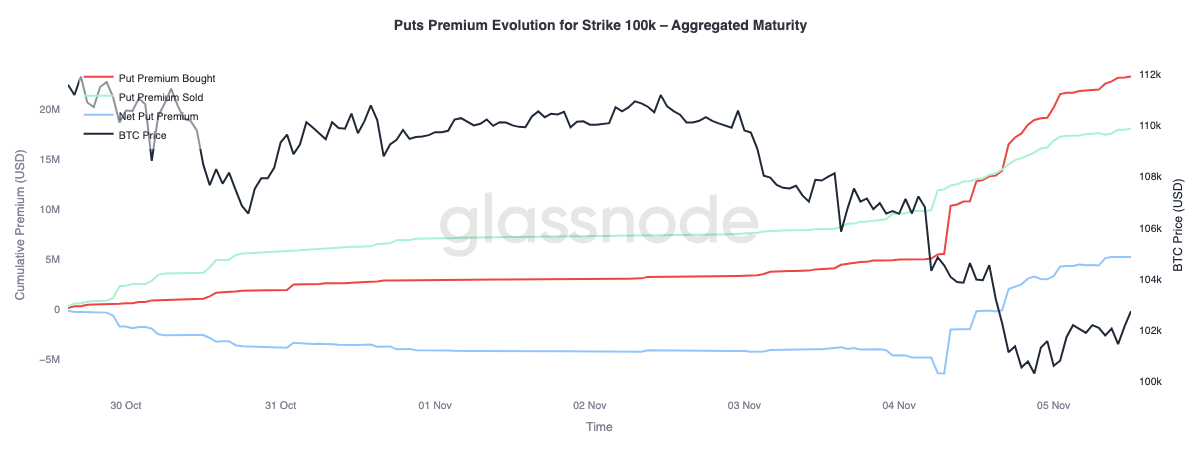100 bin dolar strike seviyesindeki put primlerini incelemek, mevcut piyasa algısına dair daha fazla içgörü sunuyor. Son iki hafta boyunca net put primleri kademeli olarak yükselmiş, dün ise yükseliş döngüsünün sona erebileceği korkularıyla ani bir sıçrama yaşanmıştır. Prim, satış dalgası sırasında keskin bir yükseliş yaptı ve Bitcoin destek seviyesi civarında istikrar kazanmasına rağmen yüksek seviyelerde işlem görmeye devam ediyor. Bu eğilim, korunmanın etkin olduğunu ve yatırımcıların yeniden risk almaktansa korunmayı seçmeye devam ettiğini doğruluyor.