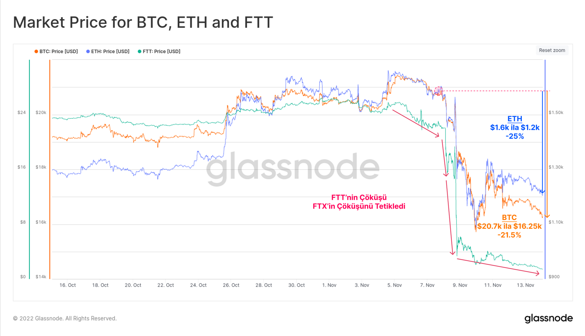 6-14 Kasım 2022 tarihleri arasında dijital varlık endüstrisinde meydana gelen olaylar, oldukça dikkat çekici. Sadece bir haftalık süre içerisinde en popüler ve yüksek işlem hacmine sahip borsalardan biri olan FTX.com;