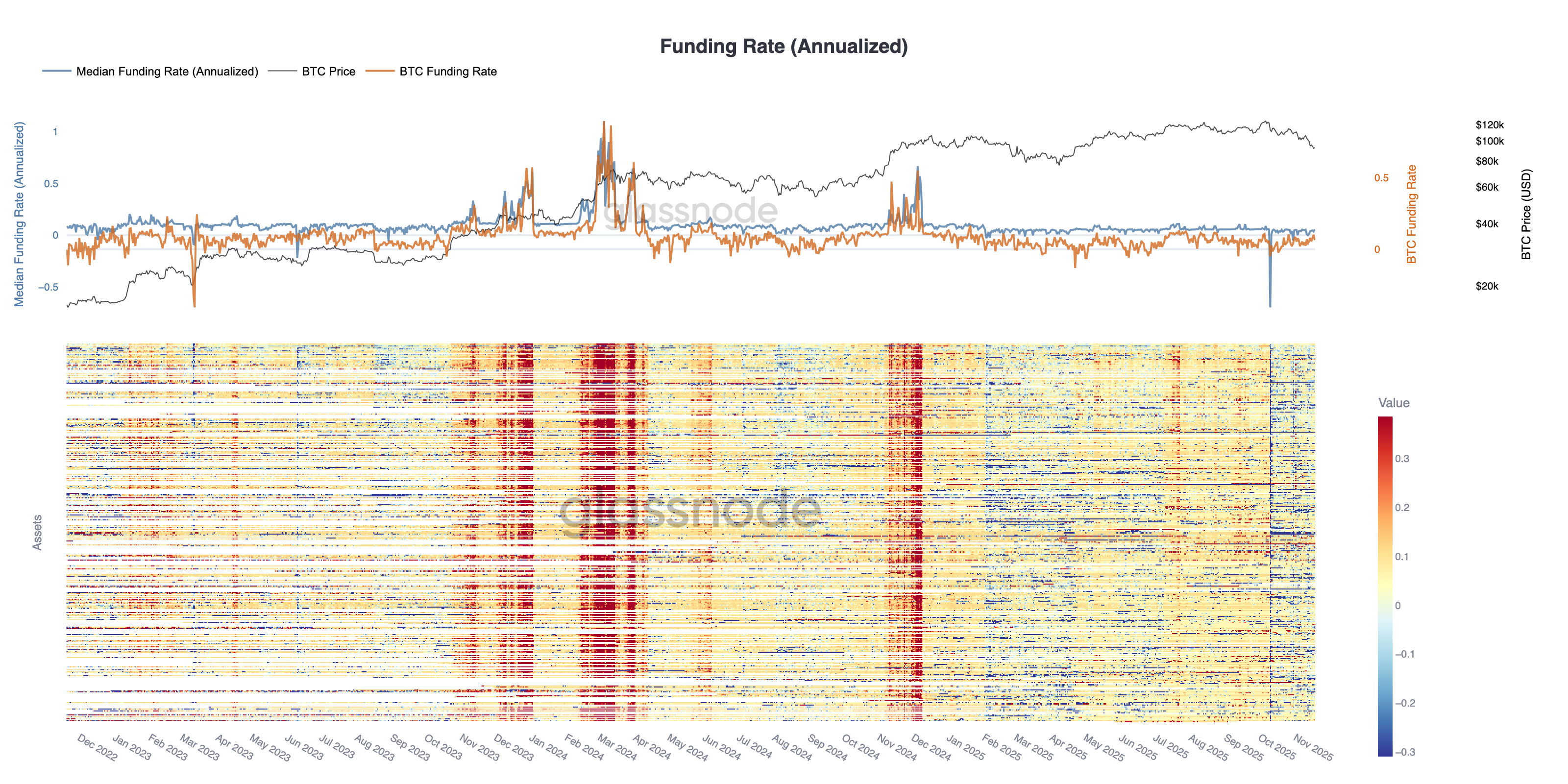 - Spekülatif kaldıraç kapanmaya devam ediyor; vadeli işlem açık pozisyonlarının düşmesi ve en iyi 500 varlıkta finansman oranlarının döngünün en düşük seviyelerine inmesi bu durumu yansıtıyor.