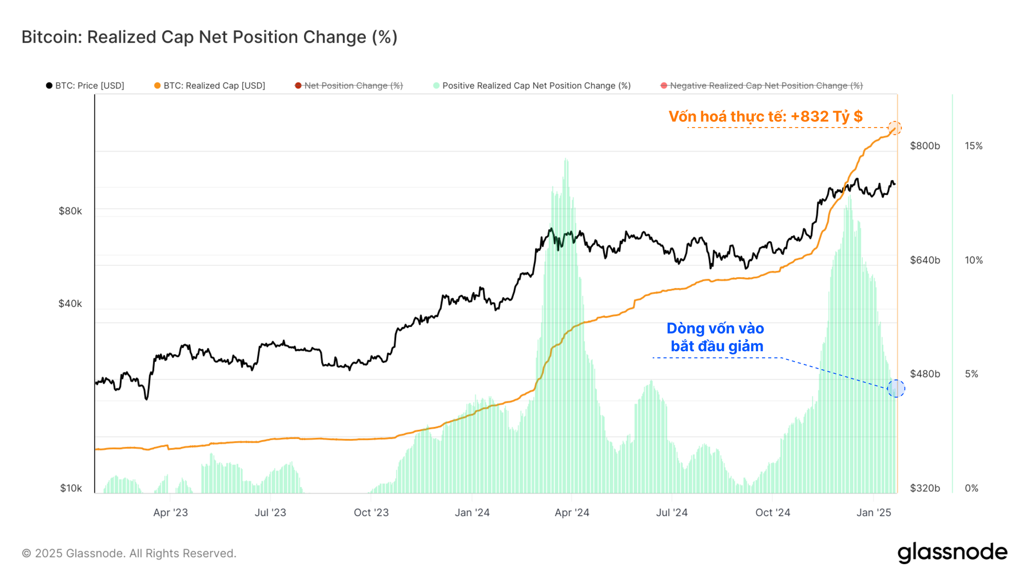 Vốn hóa thực tế hiện đang giao dịch ở ATH là 832 tỷ USD và đang tăng với tốc độ 38,6 tỷ USD/tháng.