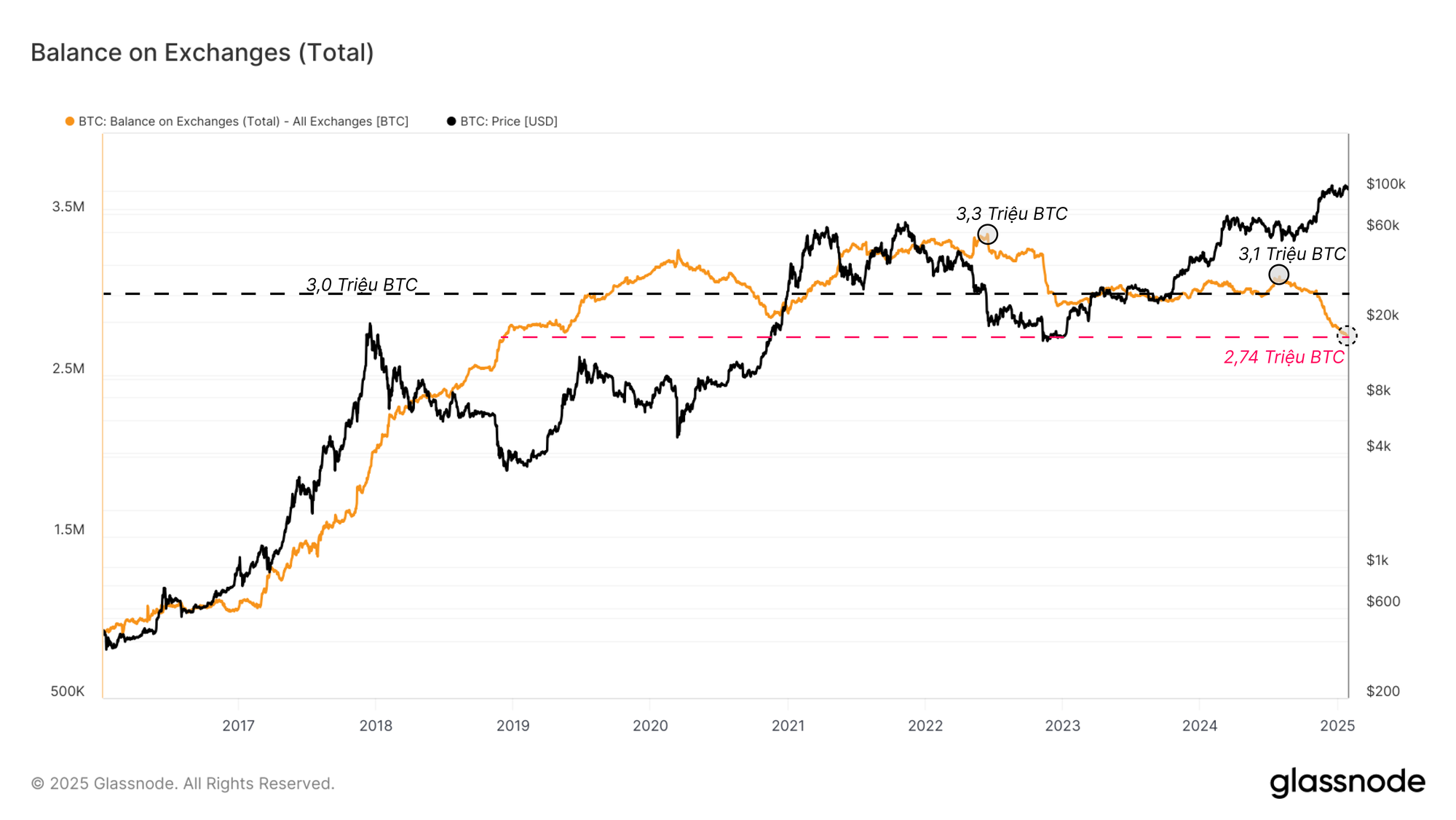 Các số liệu số dư Sàn giao dịch được lấy từ cơ sở dữ liệu toàn diện có các địa chỉ được dán nhãn của Glassnode, được tích lũy thông qua thông tin sàn giao dịch được công bố chính thức và thuật toán phân cụm độc quyền. Mặc dù chúng tôi cố gắng đảm bảo độ chính xác tối đa trong việc thể hiện số dư trên sàn giao dịch, nhưng điều quan trọng cần lưu ý là những số liệu này không phải lúc nào cũng phản ánh toàn bộ dự trữ của sàn giao dịch, đặc biệt khi sàn giao dịch không tiết lộ địa chỉ chính thức của họ. Chúng tôi kêu gọi người dùng thận trọng khi sử dụng các số liệu này. Glassnode sẽ không chịu trách nhiệm về bất kỳ sai lệch hoặc khả năng không chính xác nào. Vui lòng đọc Thông báo Minh bạch của chúng tôi khi sử dụng dữ liệu sàn giao dịch.