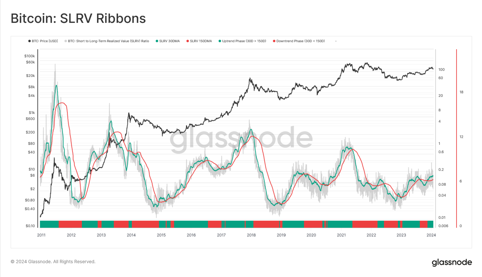 - Số liệu cơ sở: Tỉ lệ giữa HODL wave thực tế 24 giờ và HODL wave thực tế 6 tháng-1 năm (SLRV)