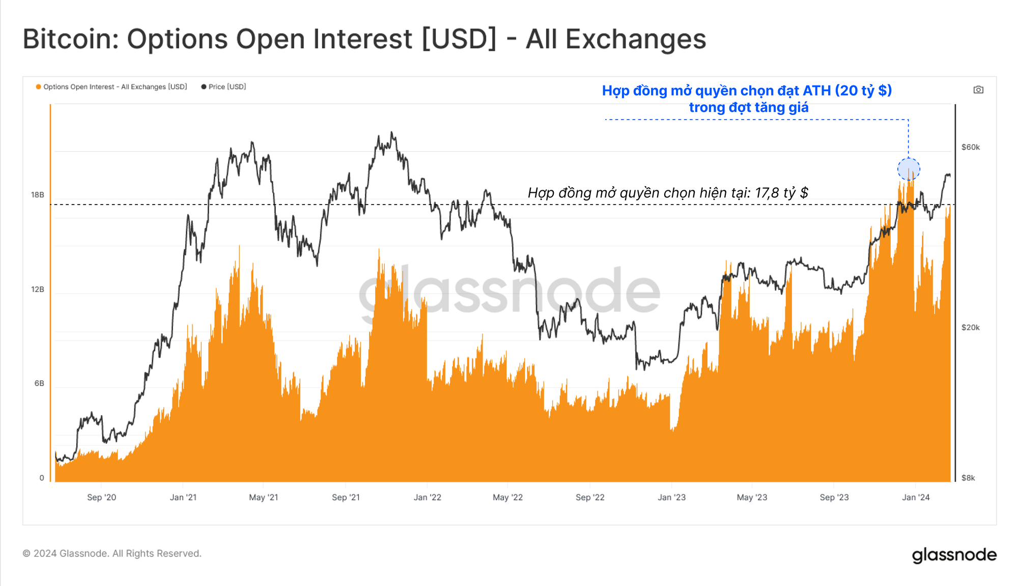 Thị trường quyền chọn cũng có mức tăng trưởng đáng kể, với hợp đồng mở đạt 17,5 tỷ USD. So sánh với mức 21 tỷ USD trên thị trường tương lai thì đây là một sự phát triển tương đối mới kể từ năm 2023.