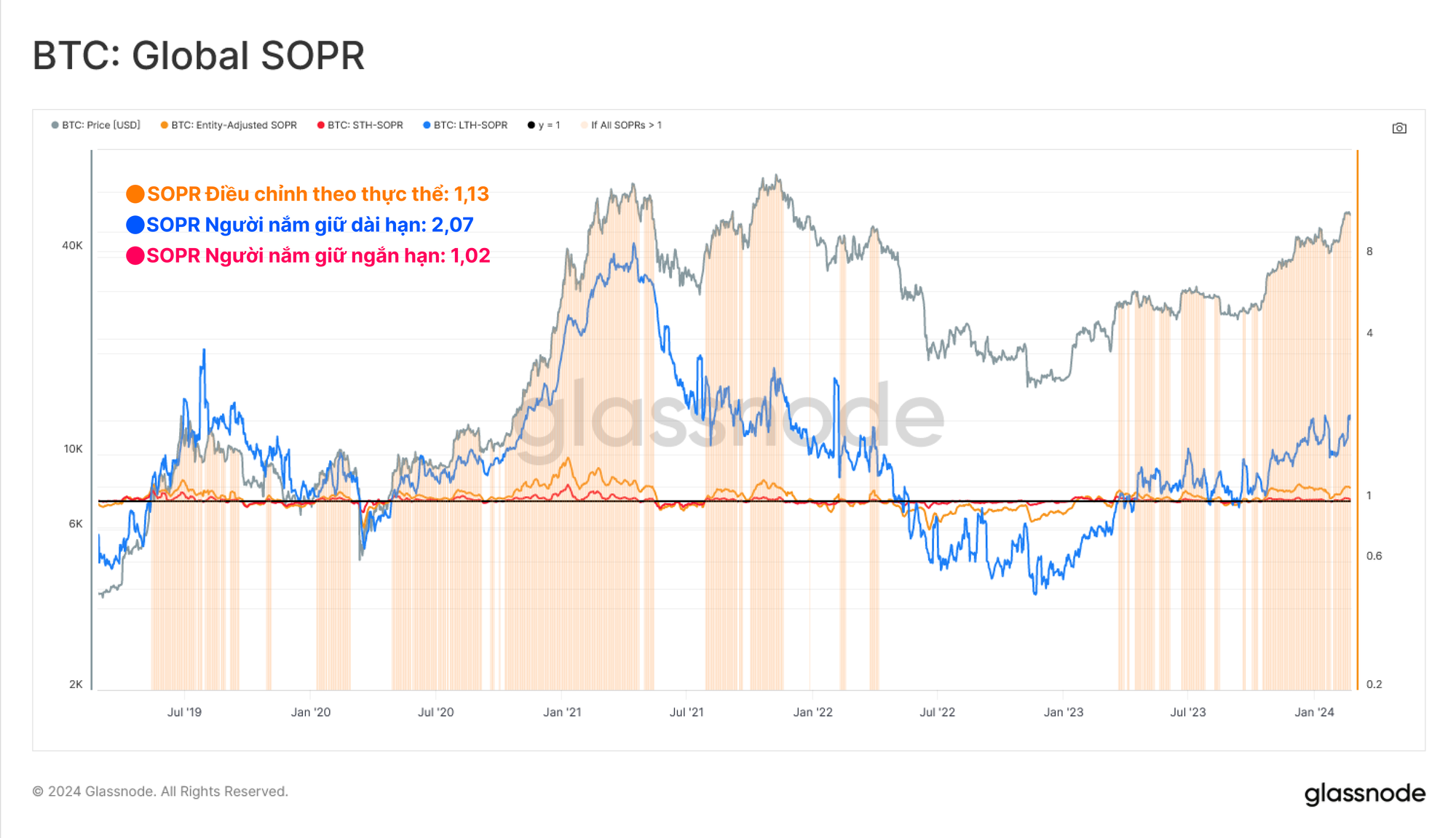 🟠 SOPR Trung bình Thị trường: 1,13 (+13% lợi nhuận)