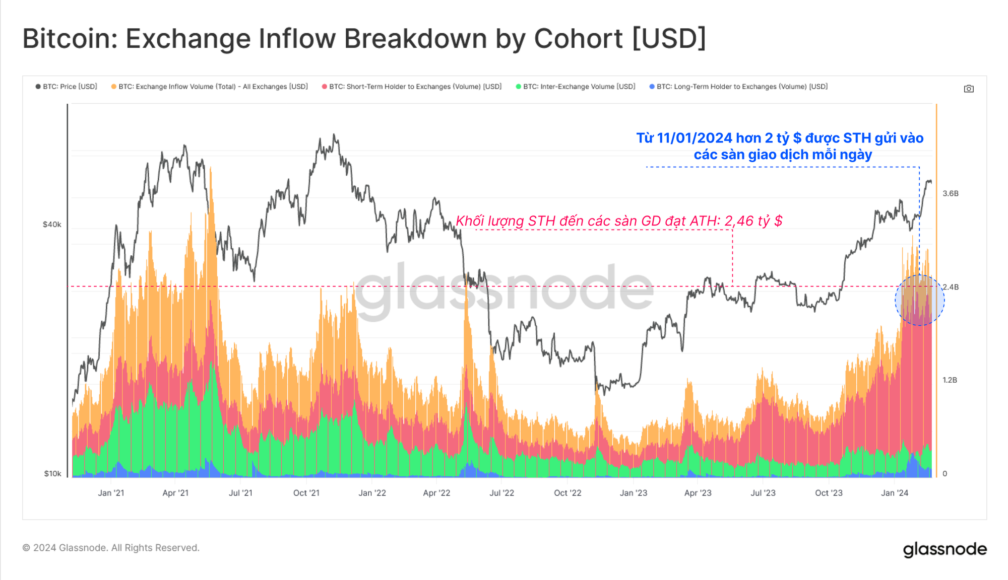 Nhóm STH đã liên tục gửi hơn 2 tỷ USD mỗi ngày kể từ giữa tháng 1, đồng thời thiết lập ATH mới là 2,46 tỷ USD về tổng khối lượng gửi. Điều này nhấn mạnh mức độ quan tâm đến đầu cơ cao trong cấu trúc thị trường hiện tại.