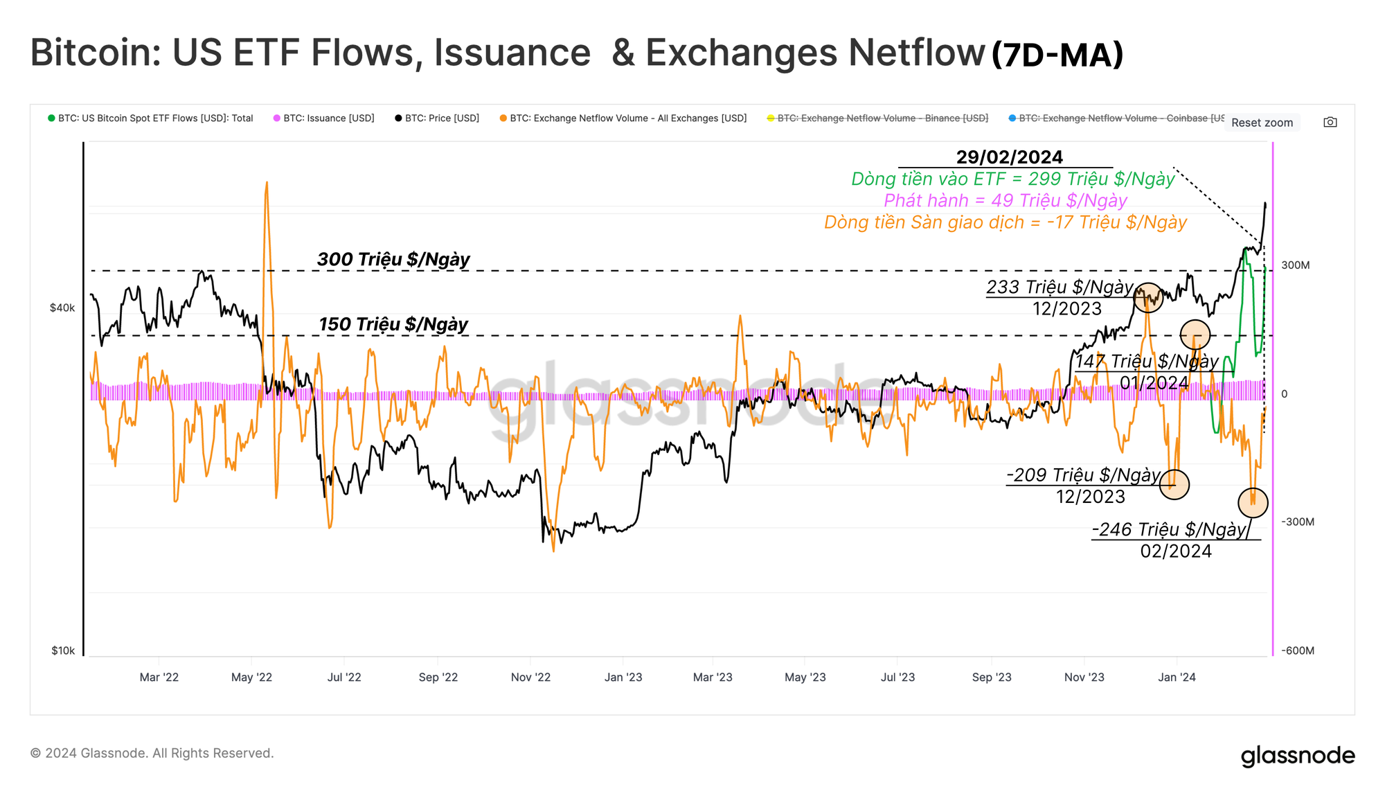 Một lần nữa, Bitcoin đã khiến các nhà đầu tư ngạc nhiên khi lần đầu tiên quay lại mức ATH trước khi sự kiện halving diễn ra. Các quỹ ETF giao ngay của Hoa Kỳ đã đưa một nguồn cầu mới đáng kể vào thị trường, bù đắp cho lượng phát hành hàng ngày và áp lực bên bán trên các sàn giao dịch.