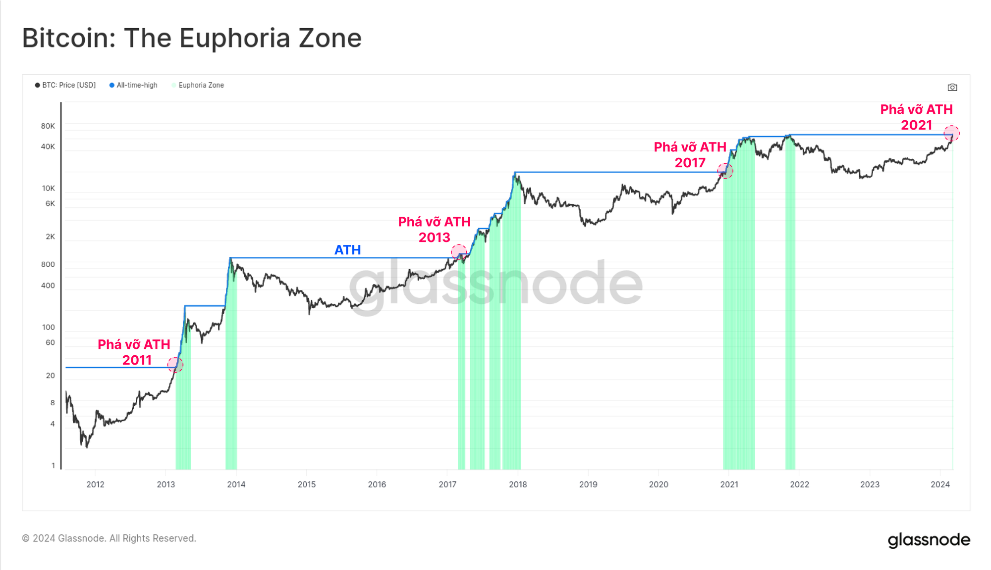 Bitcoin đã phá vỡ mức cao nhất mọi thời đại mới tính theo USD trong tuần này, vượt qua 69.200 USD và tăng trên 72.300 USD. Nếu chỉ xem xét những lần phá vỡ trên ATH chu kỳ trước thì đây sẽ là ATH mới chu kỳ thứ tư trong lịch sử.