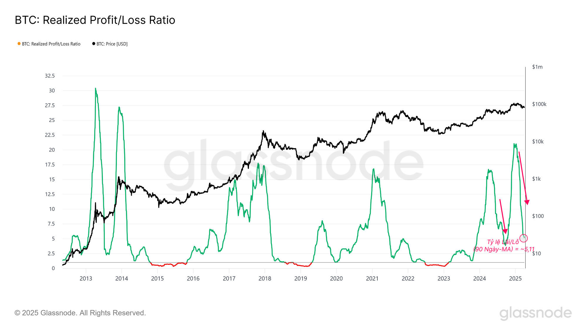 Đáng chú ý nhất là mỗi lần giảm xuống phạm vi $76k đến $80k đều trùng với Tỷ lệ Lợi nhuận/Thua lỗ giảm xuống dưới 1,0, làm nổi bật các đợt thua lỗ lớn hơn lợi nhuận. Sự mất cân bằng này thường đánh dấu mức độ kiệt sức của người bán khi động lực giảm giá giảm dần do áp lực bán được hấp thụ.
