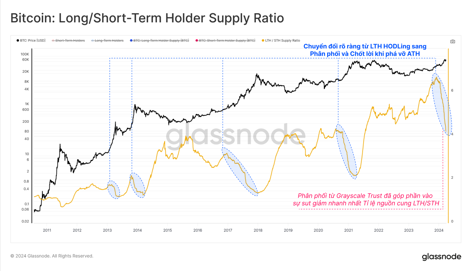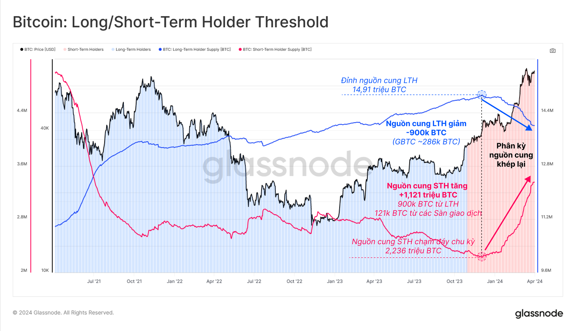 Lưu ý: Nguồn cung LTH và STH được hiển thị trên các trục y riêng biệt để dễ hình dung.
