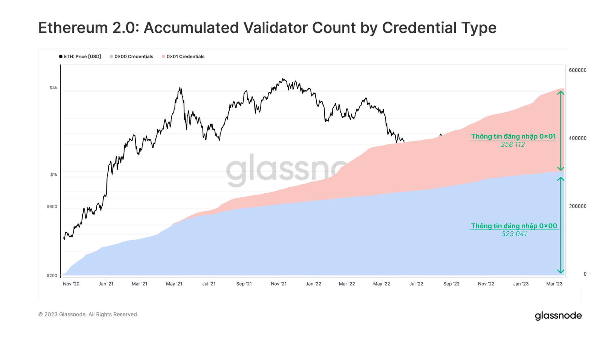 Như đã mô tả ở trên, chỉ những validator có thông tin đăng nhập 0x01 mới tham gia vào quy trình rút tiền tự động.Hiện tại, khoảng 44% validator có thông tin rút tiền phù hợp. Tuy nhiên, có nhiều validator vẫn cần cập nhật thông tin, trong số đó nhiều validator đã được triển khai từ những ngày đầu của Beacon Chain và do đó đã tích lũy được một lượng lớn phần thưởng staking. Điều này đã được Data Always phân tích chi tiết và chúng tôi sao chép biểu đồ bên dưới để chứng minh số lượng validator của hai nhóm này đã phát triển như thế nào.