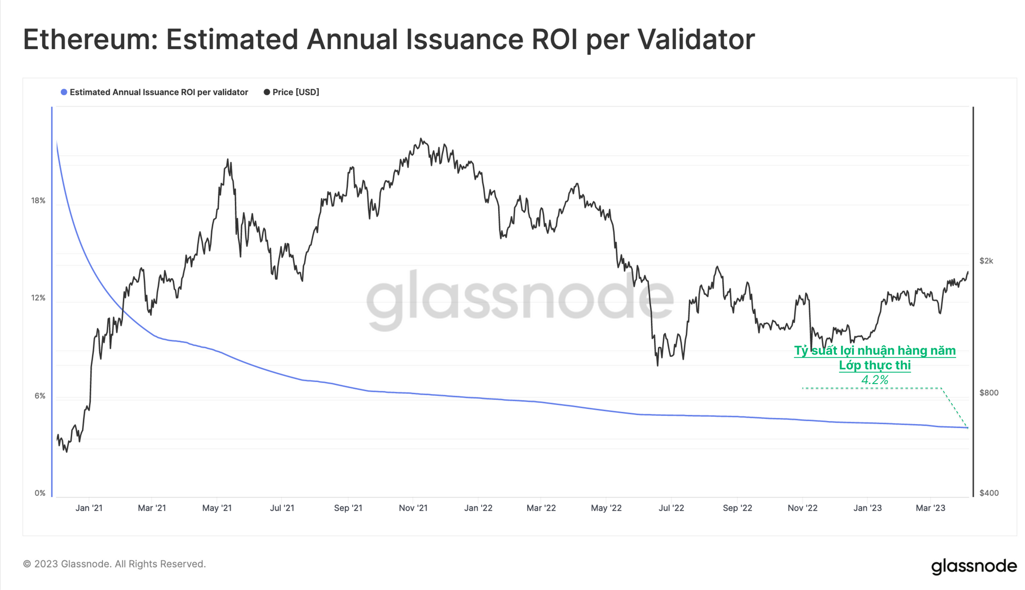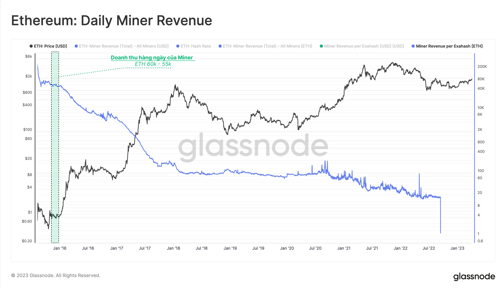 Đặt điều này vào bối cảnh, lượng ETH được rút ra này sẽ dẫn đến động lực tương tự như những gì chúng ta đã thấy trong những ngày đầu của Proof-of-Work, khi doanh thu của miner dao động trong phạm vi đó (ở mức giá dưới $1 đô la ETH).