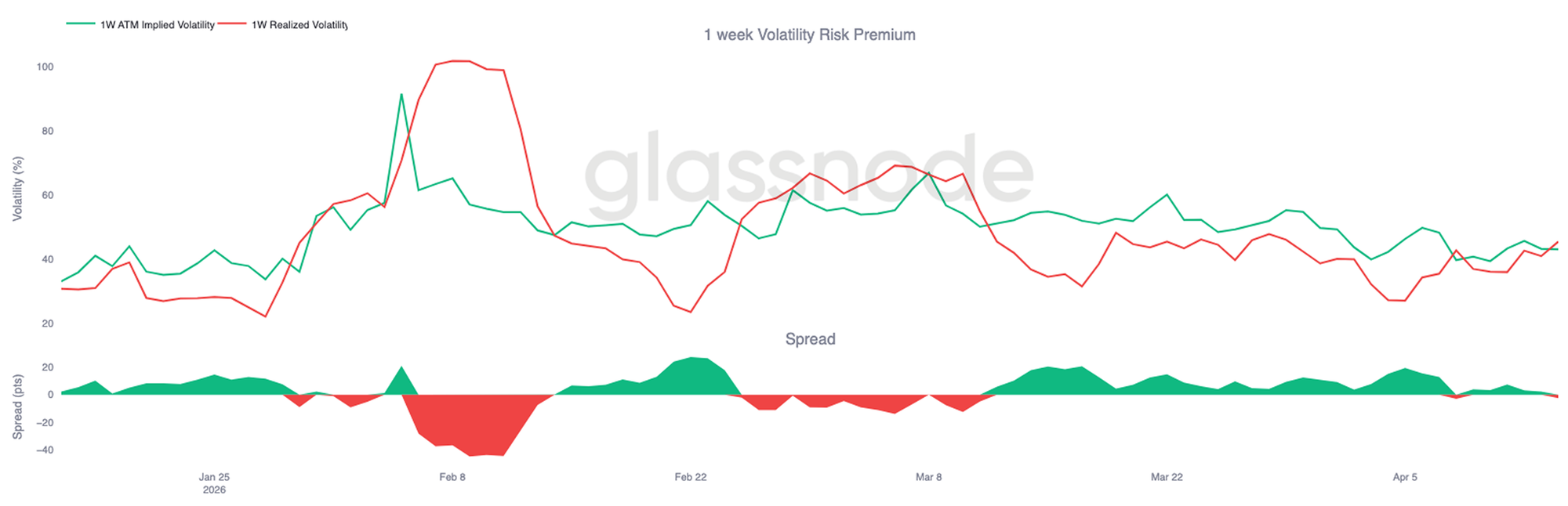 Sự thay đổi này diễn ra sau một nhịp tăng mạnh của thị trường giao ngay vào đầu tuần, khi Bitcoin ghi nhận mức tăng khoảng +5% trong khi biến động hàm ý trước đó được định giá ở mức thấp hơn. Kết quả là thị trường quyền chọn đã đánh giá thấp mức độ biến động thực tế của giá, dẫn đến sự đảo ngược của phần bù rủi ro.