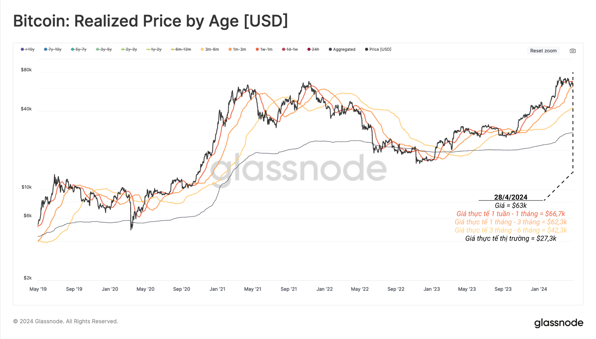 Chúng tôi có thể sử dụng tỷ lệ giữa giá giao ngay và cơ sở chi phí của từng nhóm thông qua tỷ lệ MVRV để đánh giá độ lệch điển hình trong quá trình điều chỉnh.