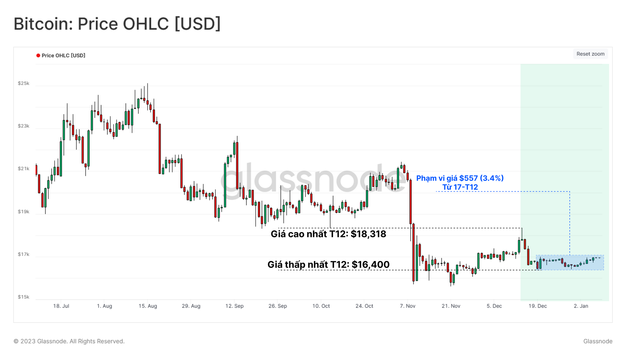 Trong một kỳ tích hiếm thấy, Bitcoin đã xoay sở để giao dịch trong phạm vi giá chỉ 557 đô trong hơn ba tuần, với mức giá cao nhất là $16,900, chỉ cao hơn 3.4% so với mức thấp nhất là $16,400. Khoảng thời gian cuối năm thường là khoảng thời gian yên tĩnh đối với tất cả các thị trường và trong trường hợp này, không gian tài sản kỹ thuật số cũng không ngoại lệ.