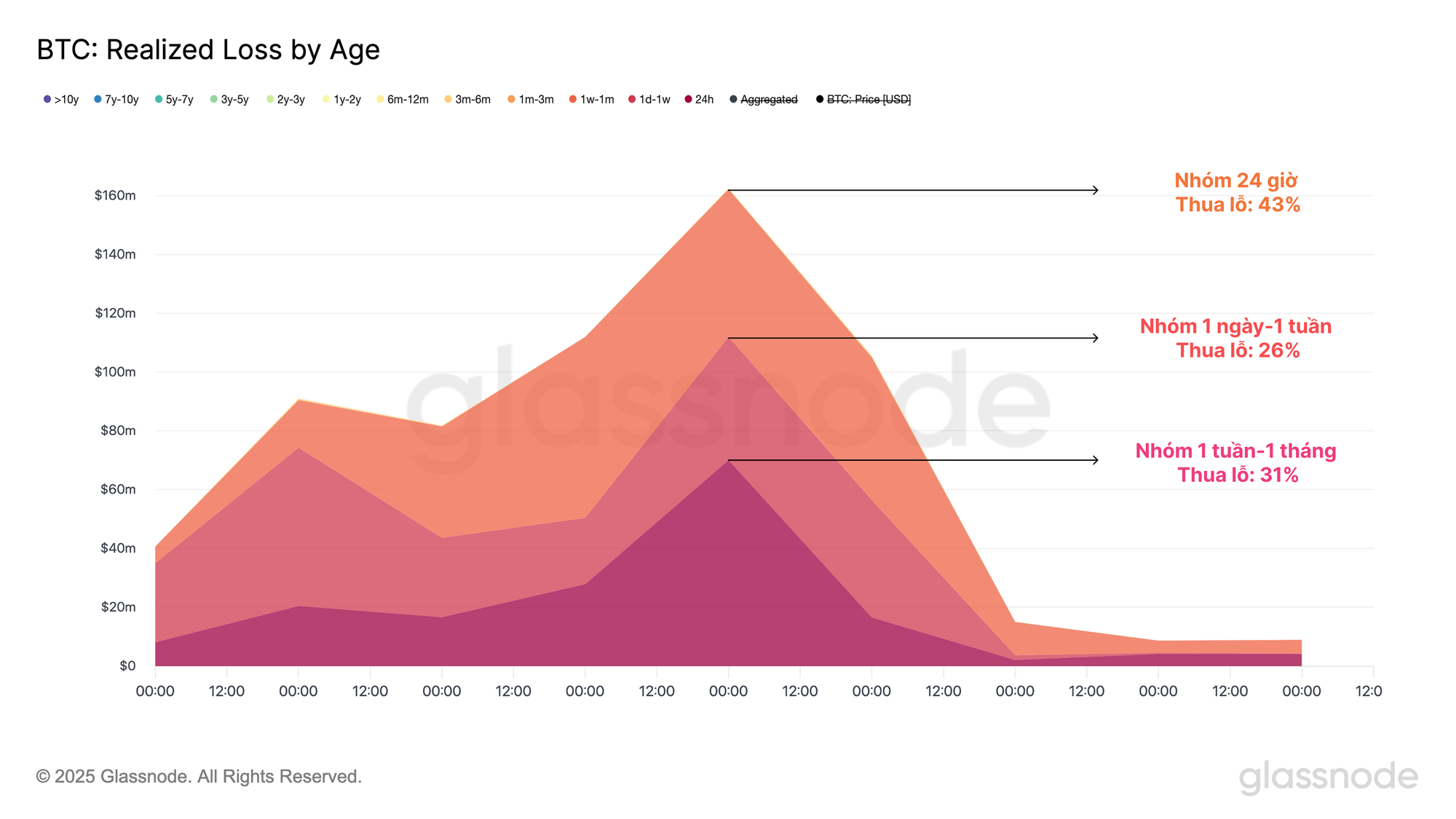 Không có khoản lỗ nào đến từ các nhà đầu tư trưởng thành, gần như toàn bộ hoạt động chốt lỗ xảy ra từ những người mua tại mức giá đỉnh trong suốt quá trình hình thành ATH, cho thấy sự đầu hàng đến từ những nhà đầu tư đầu cơ nhất.
