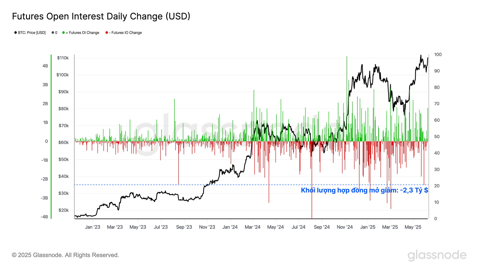 Tuy nhiên, sự đóng vị thế của một khối lượng đáng kể hợp đồng mở đã xảy ra trên khắp các thị trường tương lai, với hơn -2,3 tỷ USD hợp đồng bị đóng hoặc rút lại. Đây là sự kiện lớn thứ 7 trong chu kỳ hiện tại, làm nổi bật sự sụt giảm như một sự kiện giảm đòn bẩy đáng kể trong chu kỳ này.