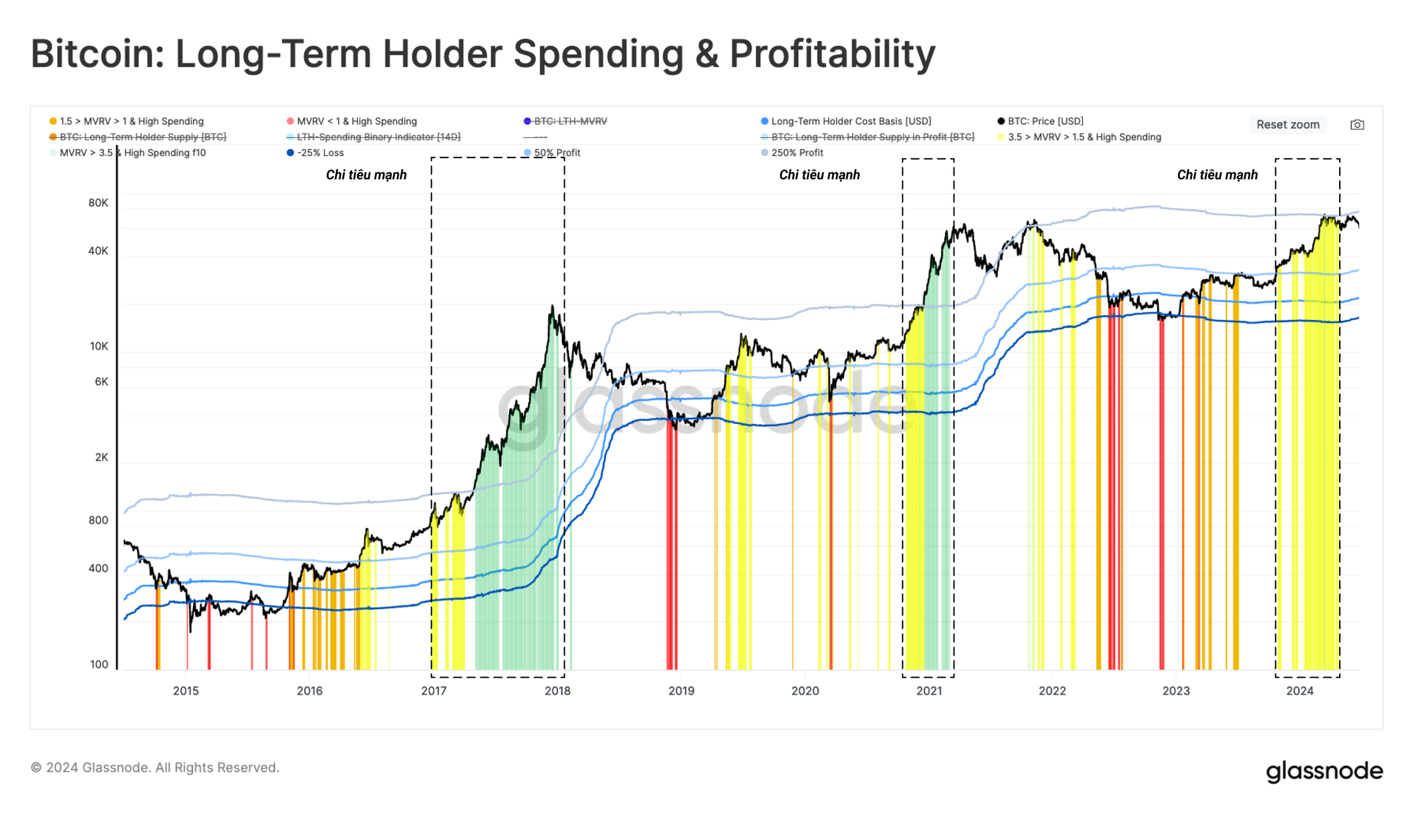 Bằng cách sử dụng khuôn mẫu này, chúng tôi có thể thấy LTH tăng cường chi tiêu trong suốt Quý 4 năm 2023 đến Quý 1 năm 2024 do đó đưa thị trường vào chế độ cân bằng.